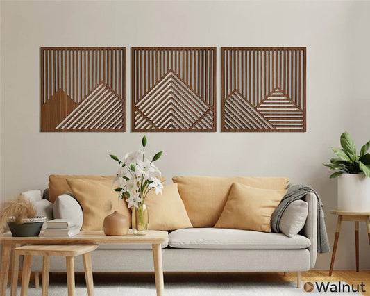 Mountain Wood Wall Art Panels Set of 3 Geometric Wooden Artwork