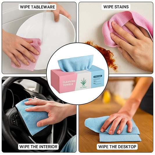 Reusable Microfiber Cleaning Towels Dispenser Box – Drying Wipes, 180GSM, 8 by 8 Inches