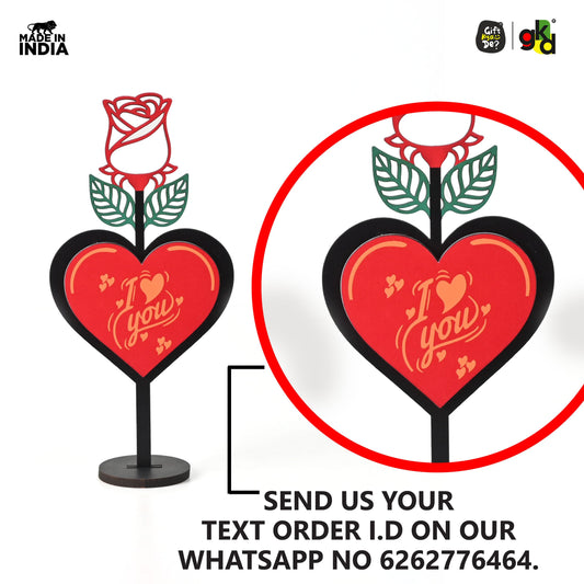 Valentine's Day Wooden Rose with Heart Design - Personalized Text or Photo