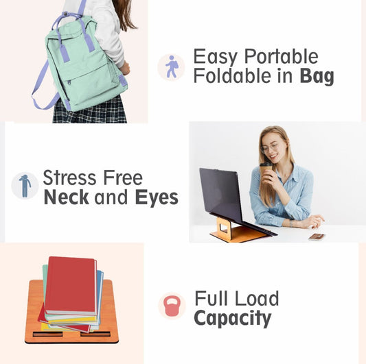 Wooden Foldable Portable Laptop Stand With 3 Level Adjustable Stand | Laptop Accessories | Gadget 2024