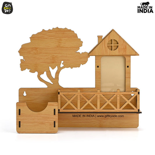 Wooden Desk Organizer With Photo Frame | Desk Accessories Holder | Home & Office Decor