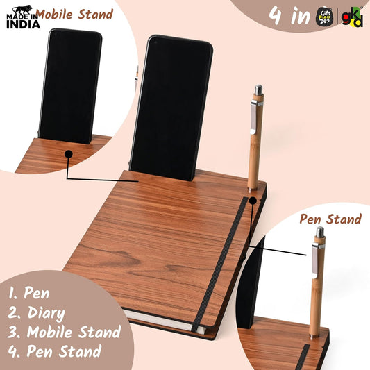 Wooden Smart Diary with Mobile Holder & Pen Stand | Includes Wooden Pen | Useful Gift For Office, Corporate & Personal Use