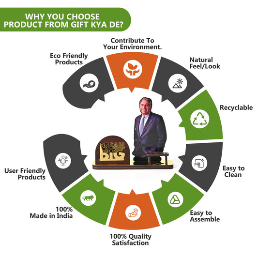 Wooden Ratan Tata and Dhirubhai Ambani Table Top with Pen Holder and Visiting Card Holder | Desk Organizer for Office and Home