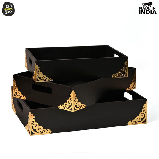 Wooden Tray Set of 3 Premium Baskets for Gift Packing Also Dry Fruits Tray for Serving Chocolates Sweets Cookies, Festival hampers Gift Trays for Wedding (3pc 16x12 14x11 12x9 inch)