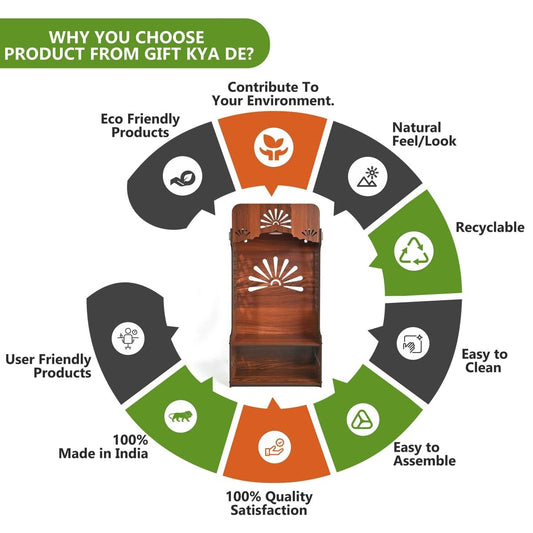 Wooden Temple for Home Wall Mounted with LED Light | Traditional & Modern Pooja Mandir Designs | Easy to Assemble (DIY)