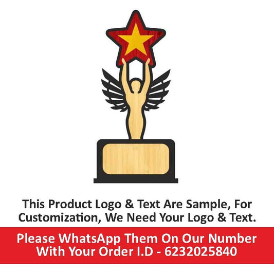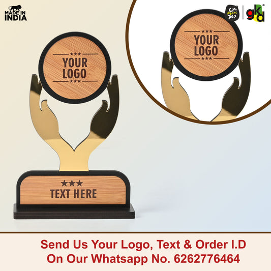 Customized Wooden Trophy with Golden Acrylic | Personalized Memento for Events, Corporate & School Functions