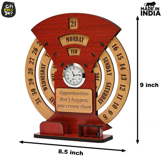 Infinite Circular Calendar With Pen, Card Holder & Wooden Diary Combo