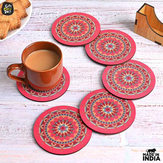 Coaster Set of 12 Beautiful Wooden Coasters with Proper Coaster Stand (Combo Pack) (12 pc 3.5 x 3.5 inch)