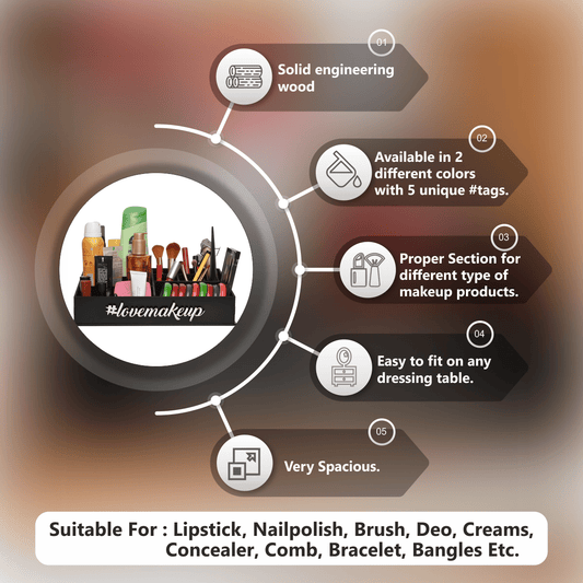 Makeup Organizer For Dressing Table | 9 Compartments | Storage boxes For Lipstick, Nail Polish (12 x 9 inch)