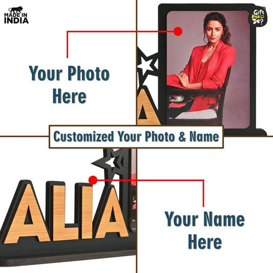 Personalized Wooden Photo Frame with Name and Photo | Gifts for Birthday, Anniversary & Valentine's Day | Table Mount Phone Frame
