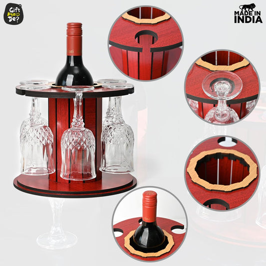 Wine Glass Holder Countertop Organizer Kitchen for 6 Glasses and 1 Wine Bottle, Wine Glass Stand for Dinning Table (Premium)