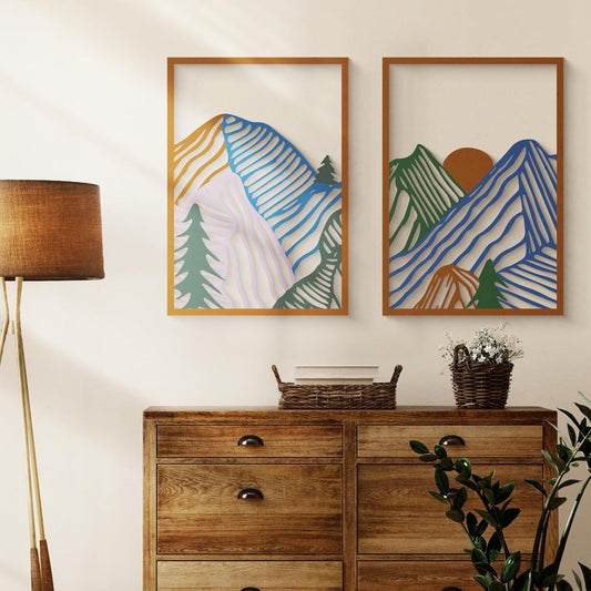 MustHome , 4 Pcs Colorful Abstract Mountain Wall Art, Nature wall decor items