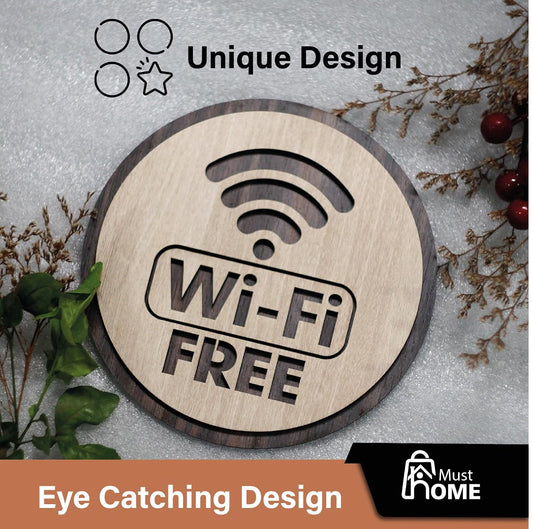MustHome |Wooden Free Wi-Fi Sign | Wi-Fi Symbol | Free Wi-Fi Logo |15 x 15 cm