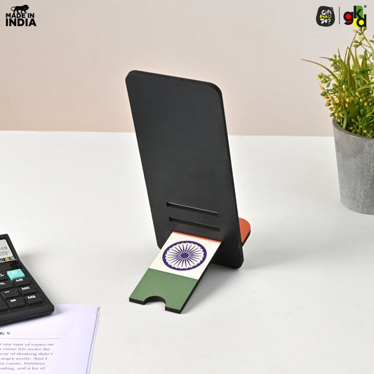 Wooden Mobile Stand with Republic Day Wishing – Patriotic Gift for Republic Day – Eco-friendly Mobile Holder