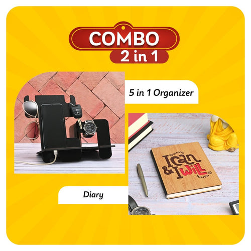 5 in 1 Organizer & Wooden Diary Combo | Birthday Gift | New Year Gift