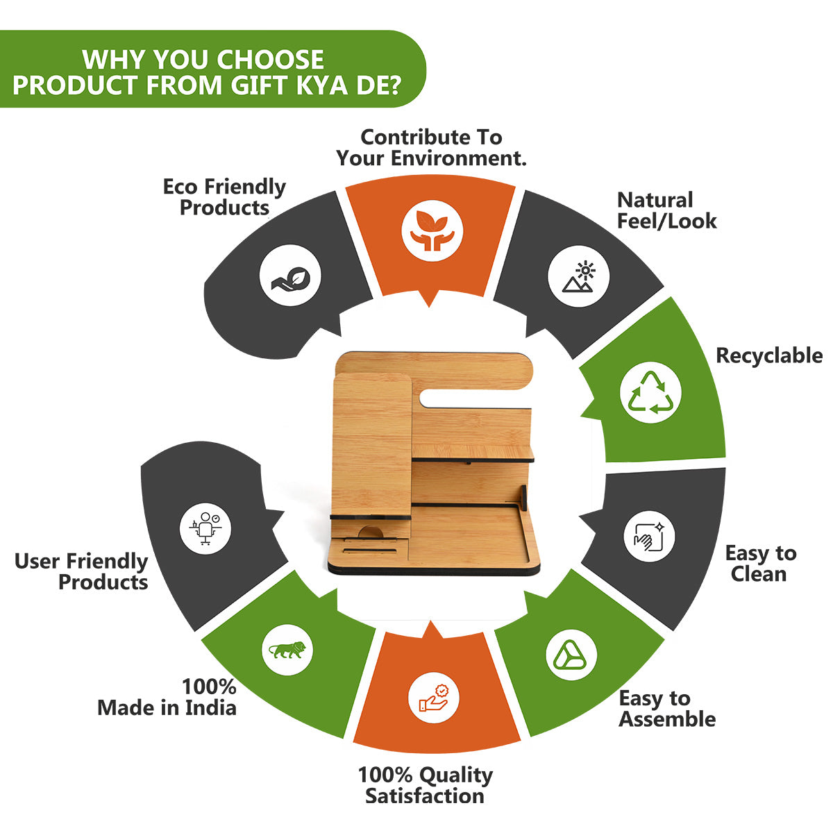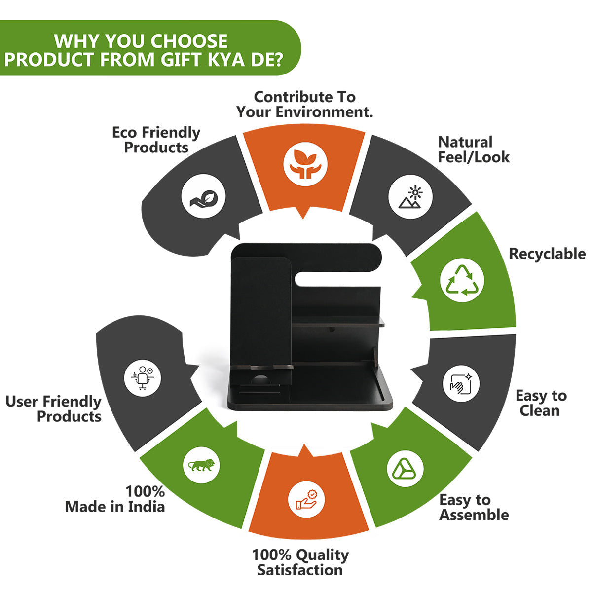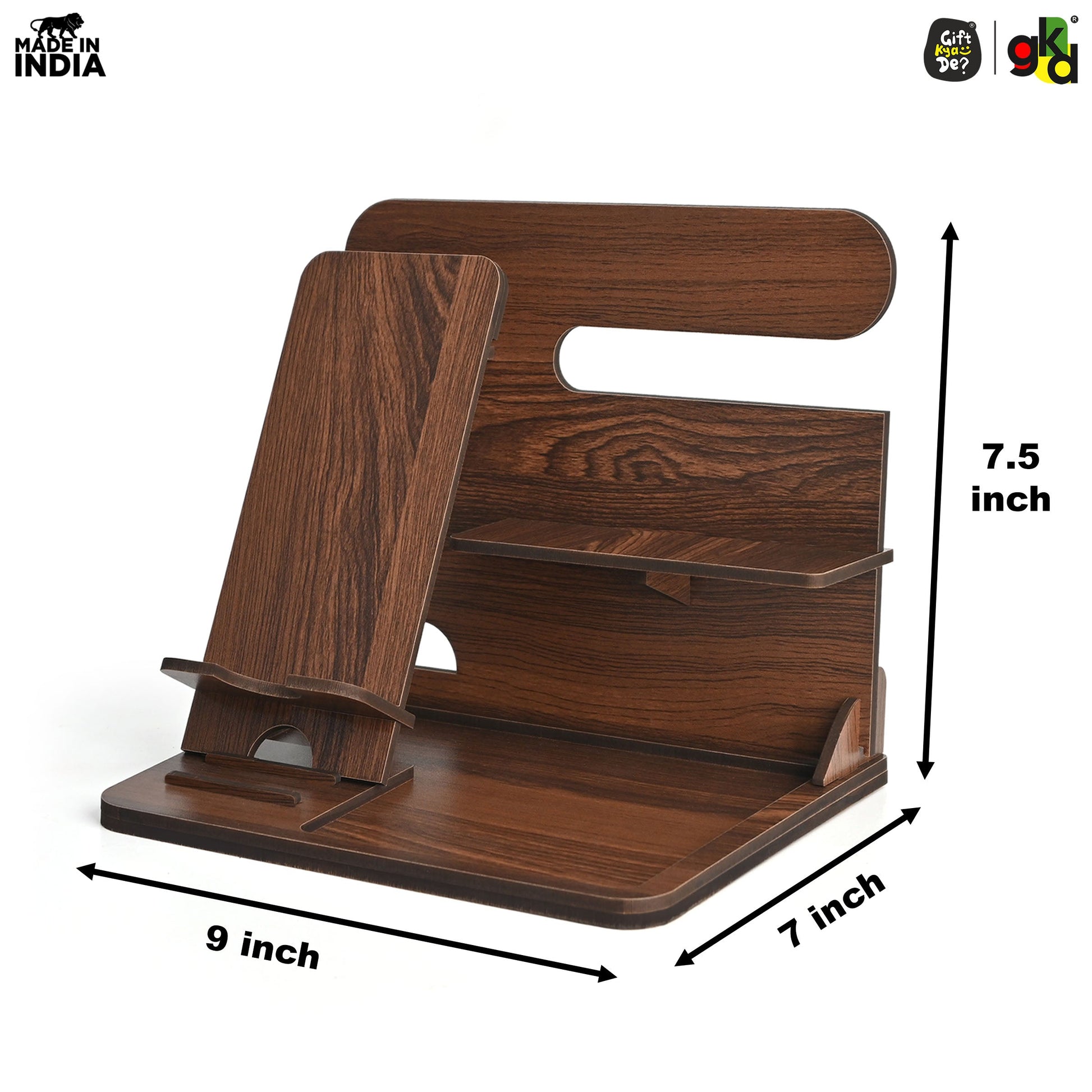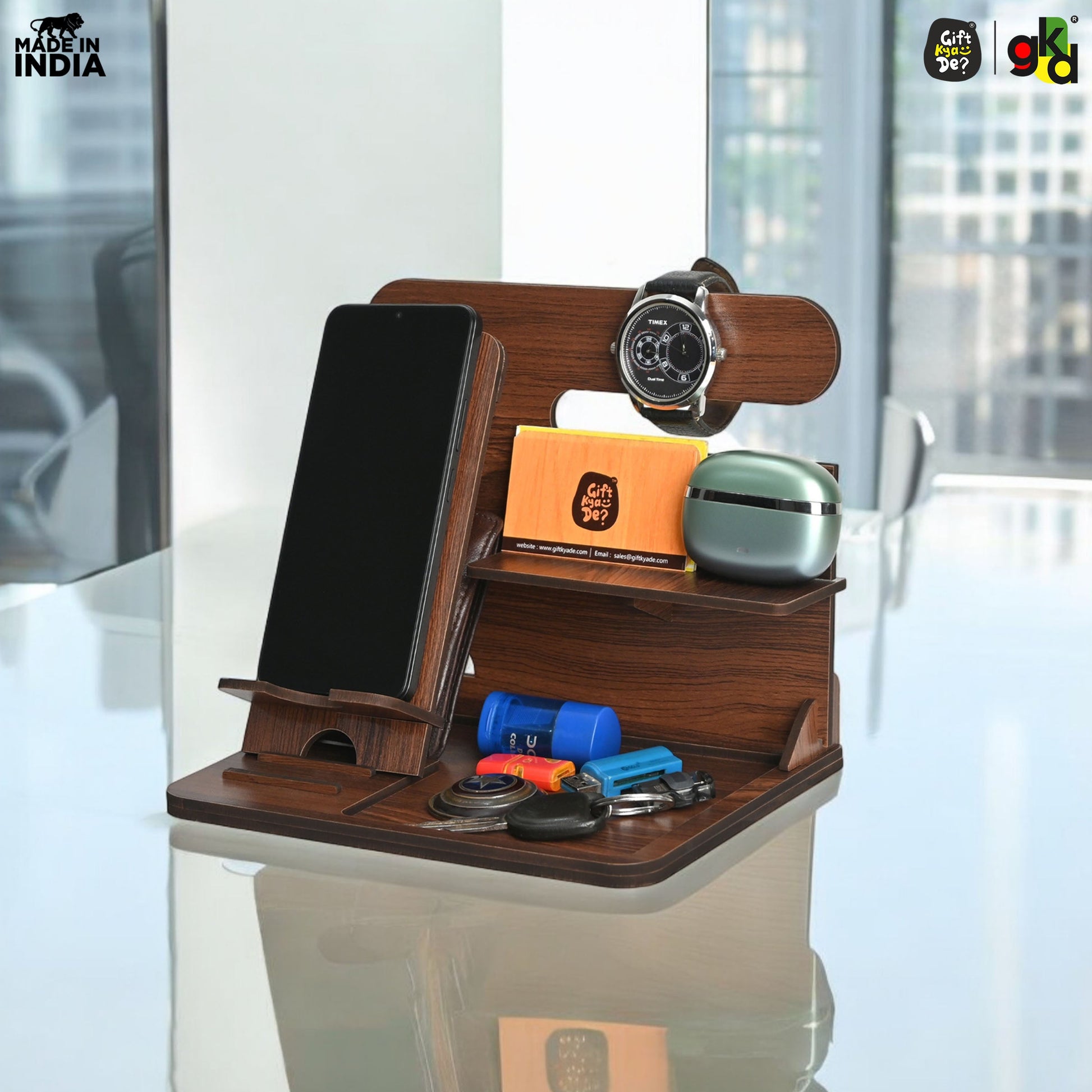 Accessories organizer helps organize all your stuff like wallet, keyring, googles, watch and Mobile stand with charging cut and docking station. Best personal organizer, with mobile stand, sticky notes holder, and visiting card holder.