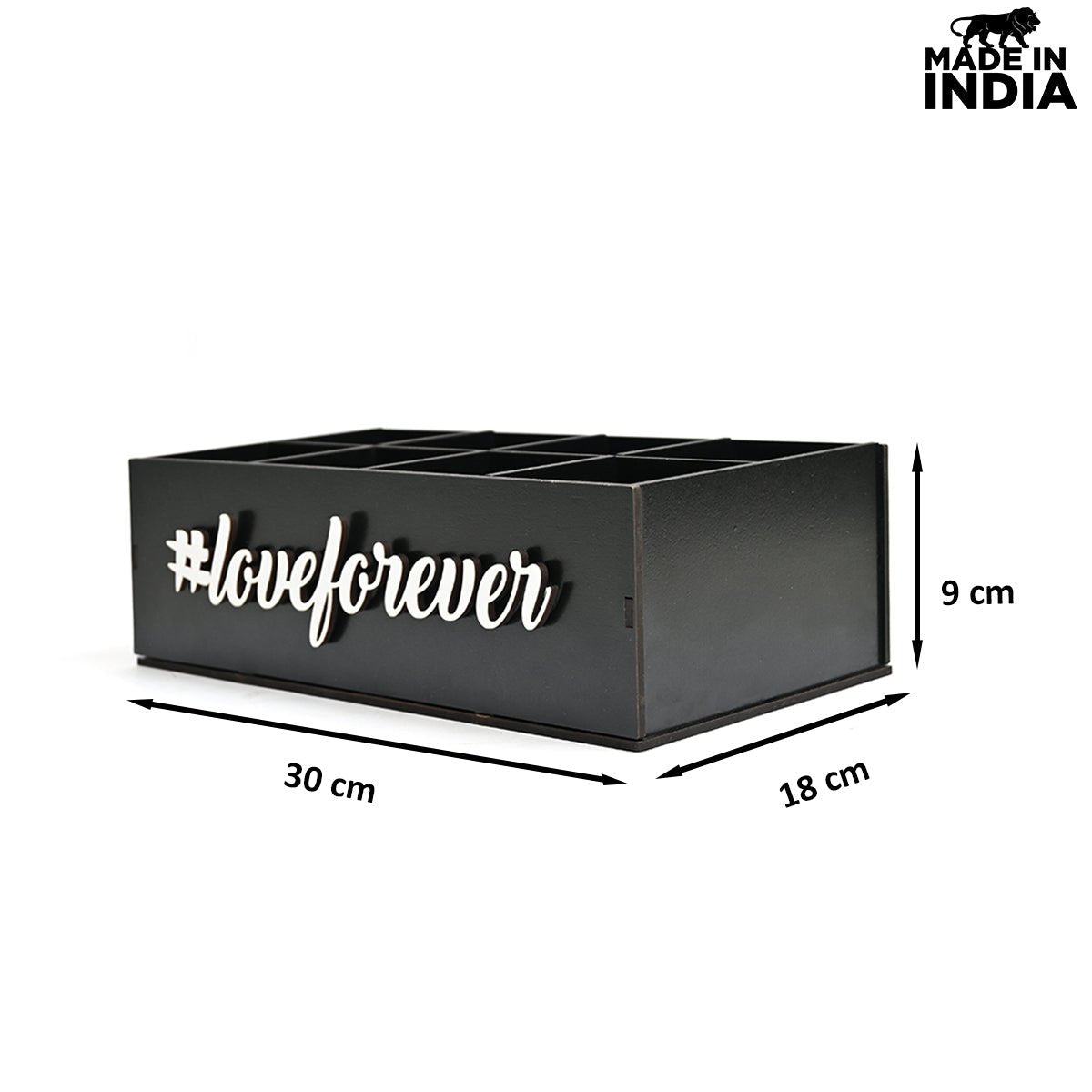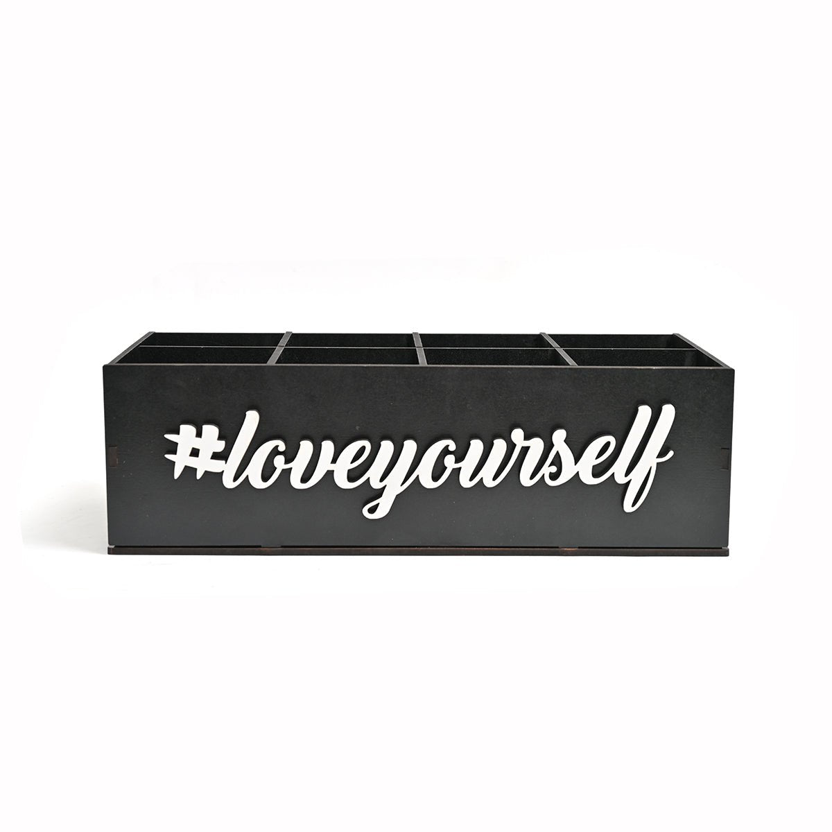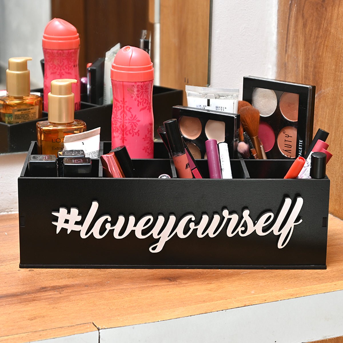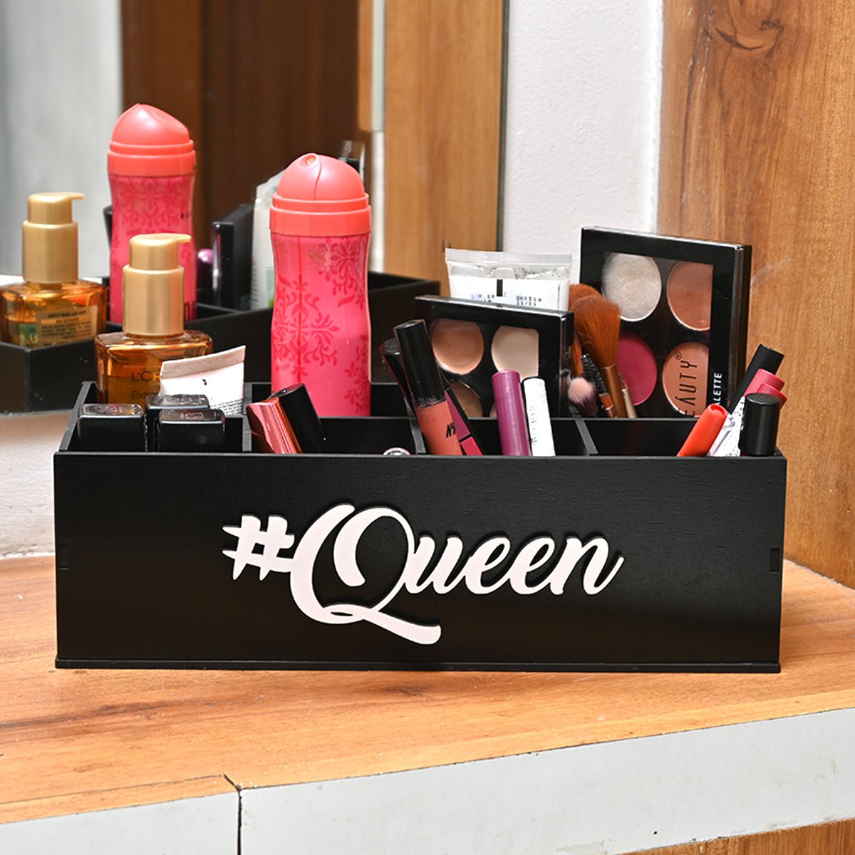 The hand-made makeup box with eight identical size compartments not only is good for classifying the items but also is a beautiful and artistic desk organizer for the study table.