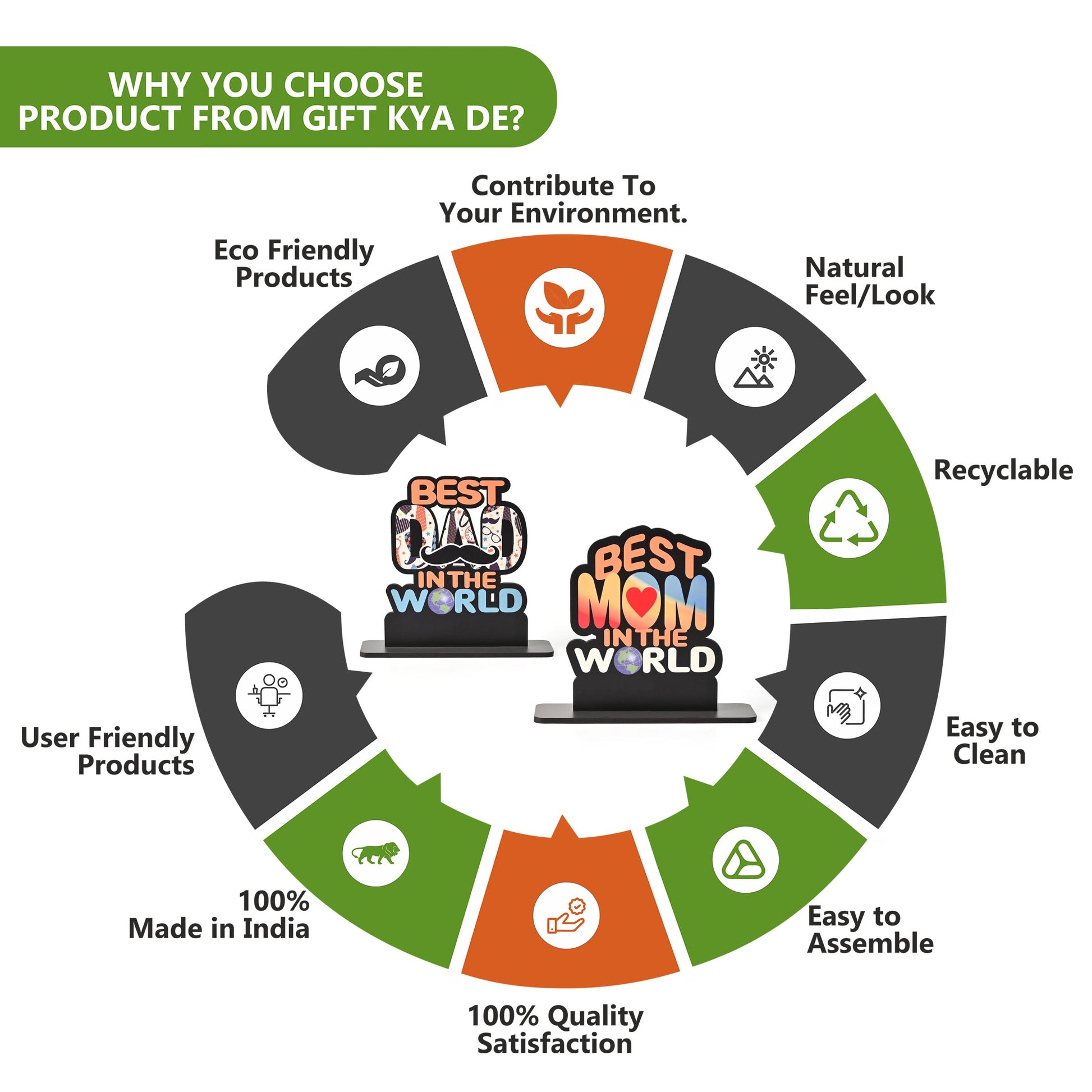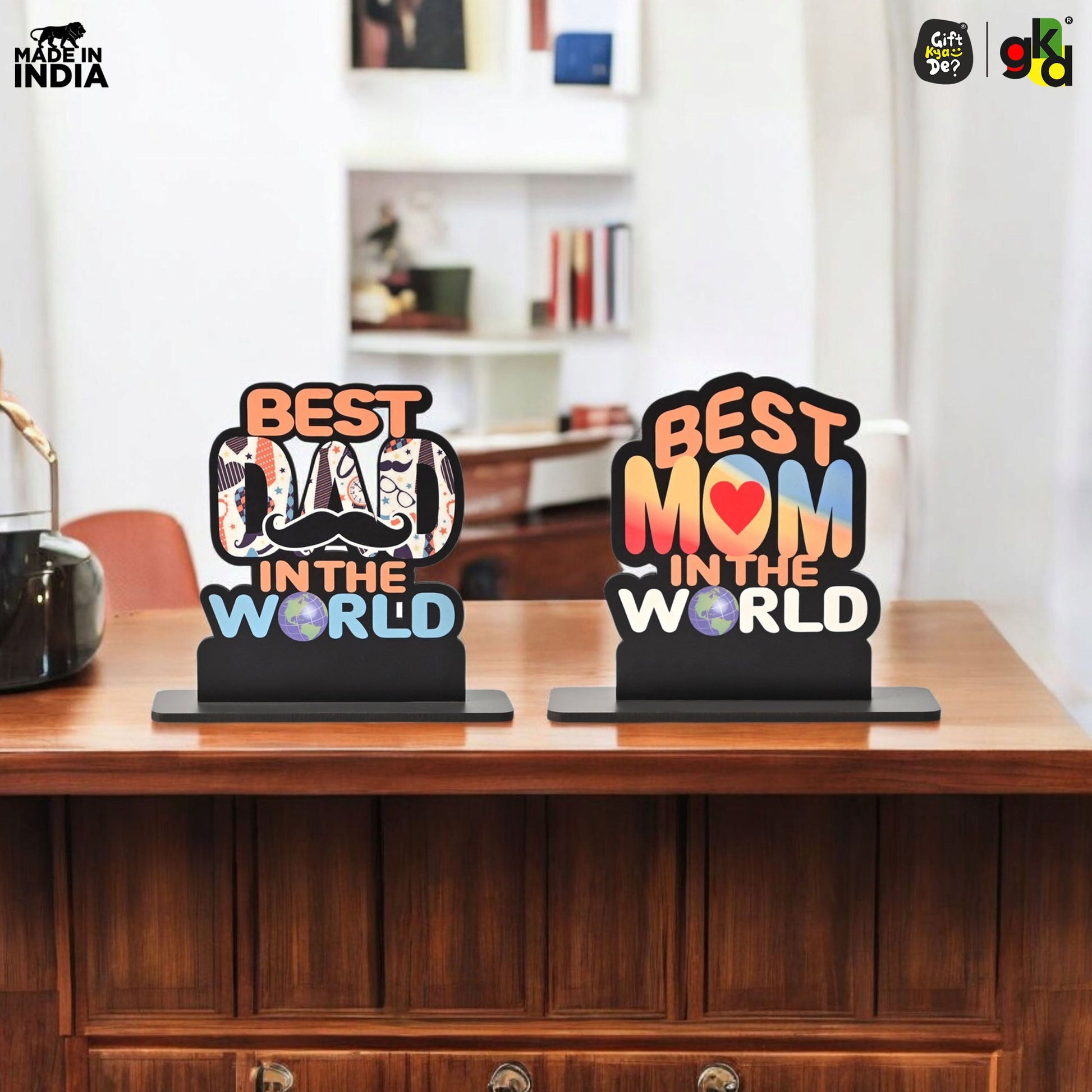 Best Mom & Dad in the World Wooden Trophy – Gift for Parents | Mother’s & Father’s Day, Anniversary, Birthday | Home Decor Table Top Showpiece