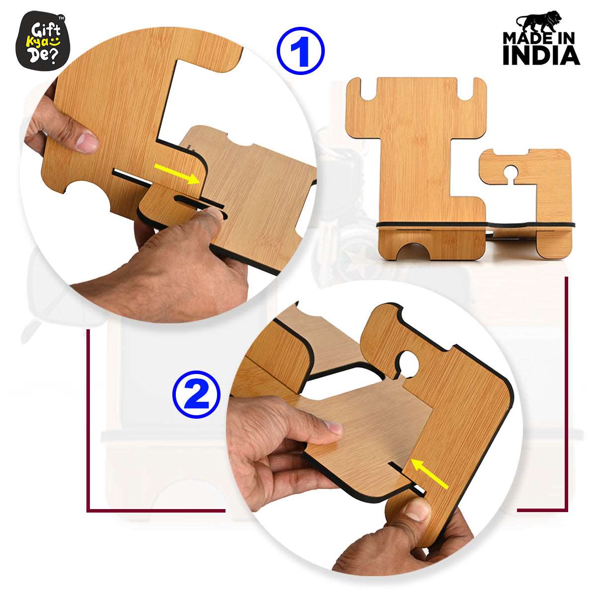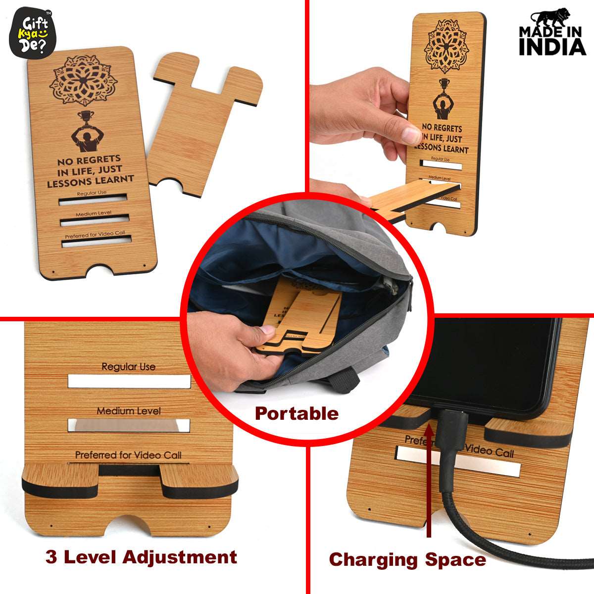 Watching movies and scrolling your feed just got easier with our wooden mobile stand.
