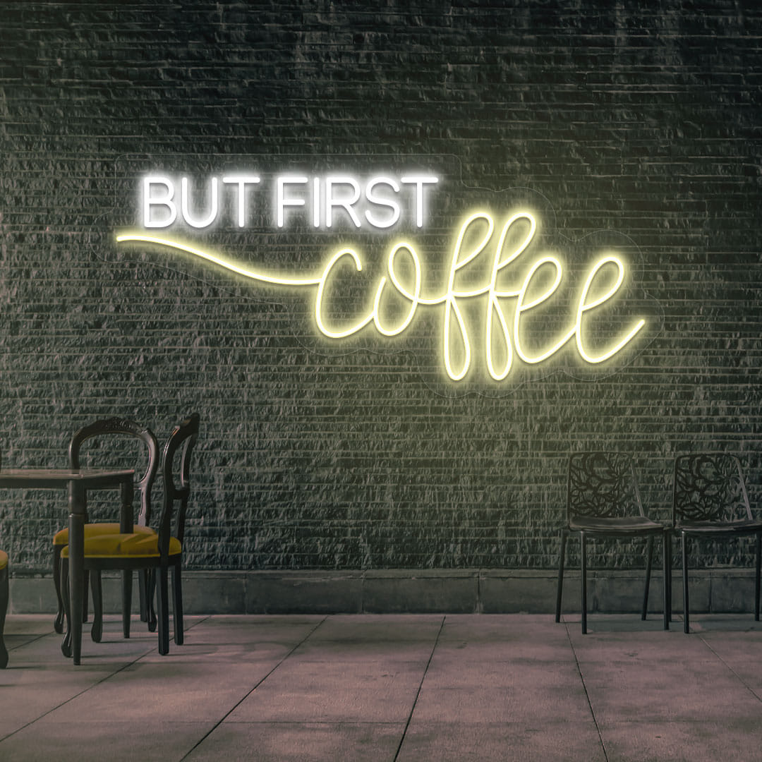 Start your day with a glow of motivation and caffeine love! The ""But First Coffee"" LED Neon Sign is the perfect wall decor for coffee lovers, morning hustlers, and cozy cafe vibes. Whether you’re decorating a home kitchen, coffee corner, café, or office space, this sign brings personality and charm to every cup. This piece blends a playful message with stylish design, making it an excellent gift for baristas, coworkers, or anyone who can’t function before that first sip. It’s more than a decorative item—it’s a daily reminder to take a breath, enjoy the moment, and sip with intention.