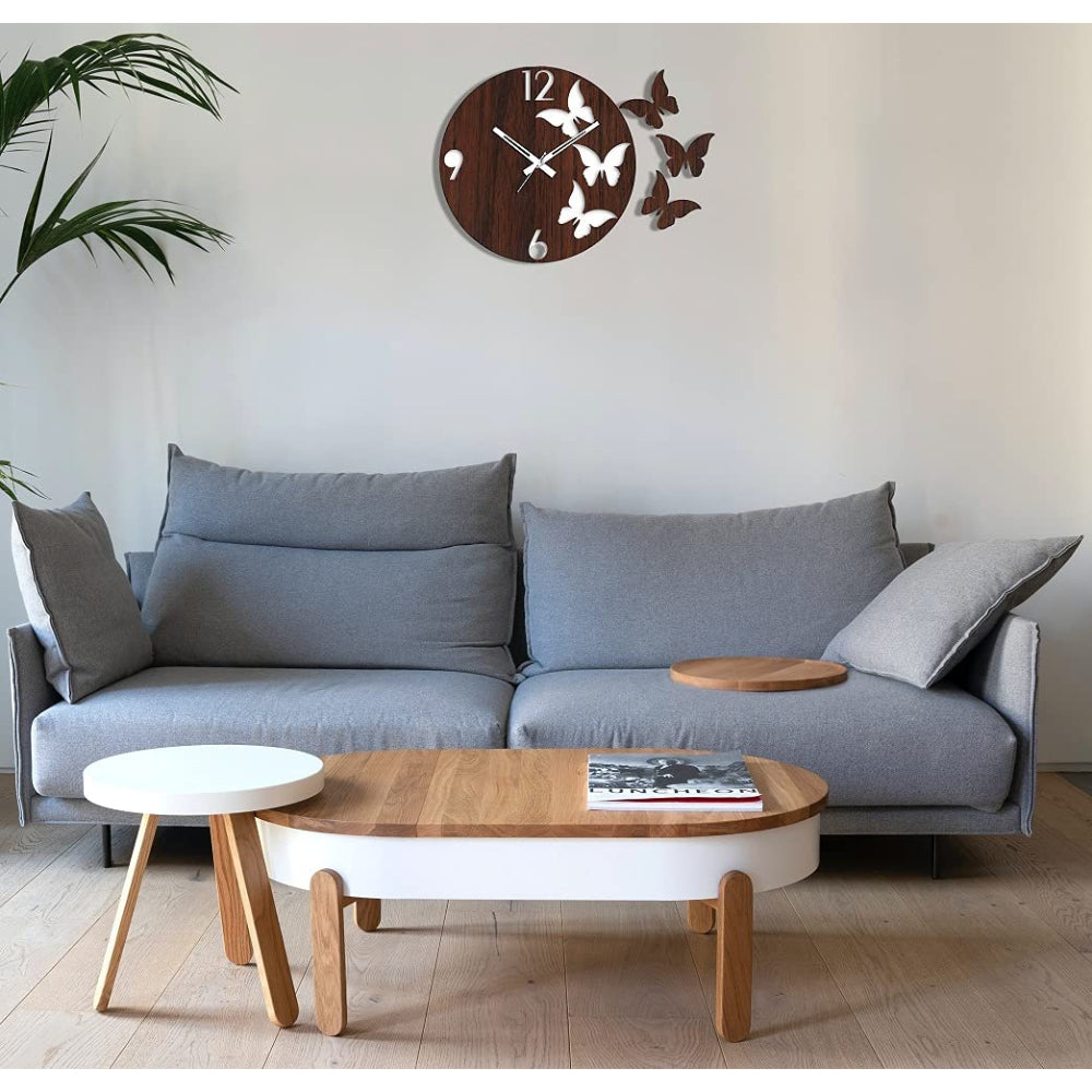 - STYLISH & FUNCTIONAL: Classic designer Fancy wooden wall clock face made of solid wood and large Round with butterfly design . Which will be great interior design to living room, Home decor, kitchen, bedroom, hall, study, office, etc.