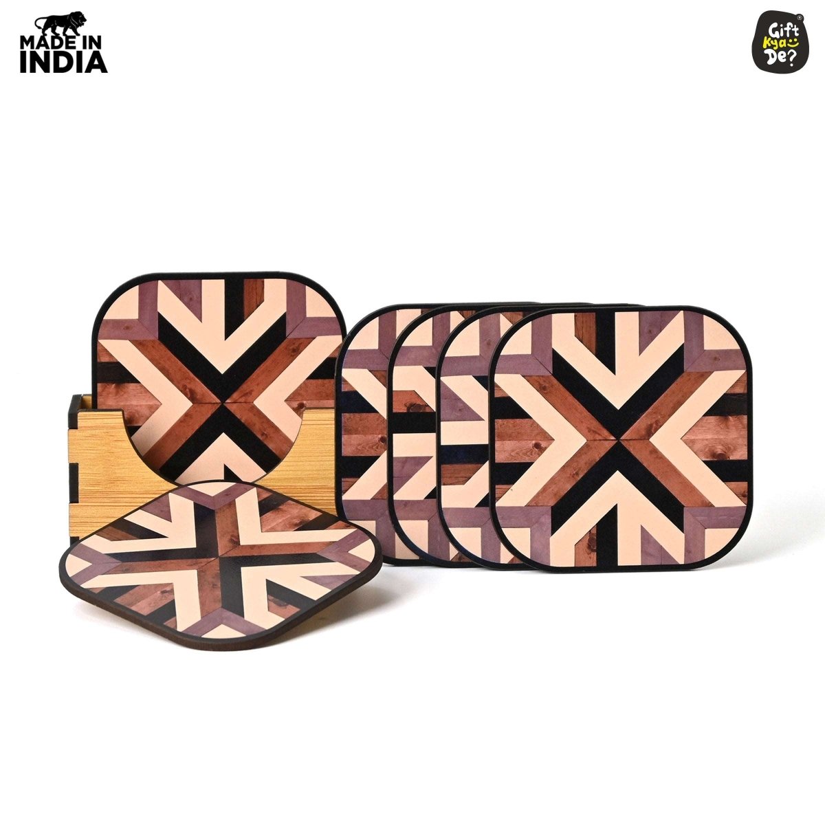 Coaster Set of 6 Chevron Design | Wooden Coasters With Coaster Stand | Kitchen Accessories (Ecofriendly)
