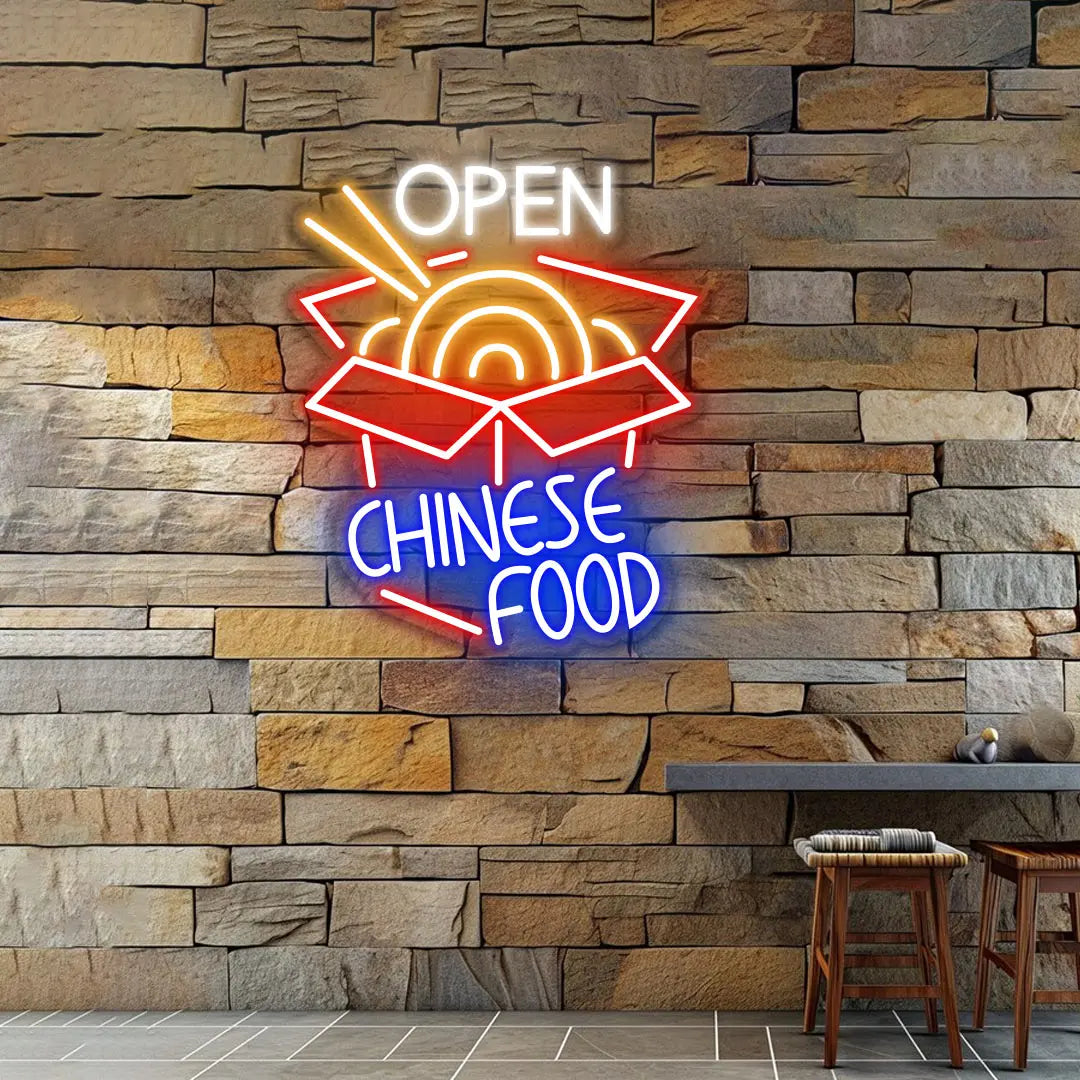 Enhance your restaurant or kitchen with the Chinese Food Open Neon Sign from Neon by FusionNeon. Featuring a bright, bold “Chinese Food Open” message, this neon light is perfect for attracting customers to your business or adding a fun, cultural touch to your home. It’s ideal for restaurants, food trucks, or home kitchens where Chinese cuisine is celebrated. The striking design and bright colors make it a standout piece for any food establishment.