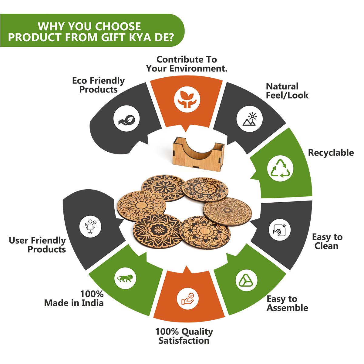 Coasters For Dining Tables Are Made Of Quality Products, 2.2 Mm Polished MDF Engineering Wood To Last Longer And Light In Weight, Made With Quality Product, And Very Easy To Clean. Strong Quality, Not Easy To Break. Completely Plastic-Free, Made Of Recycled Wood And 100% Made In India Products.