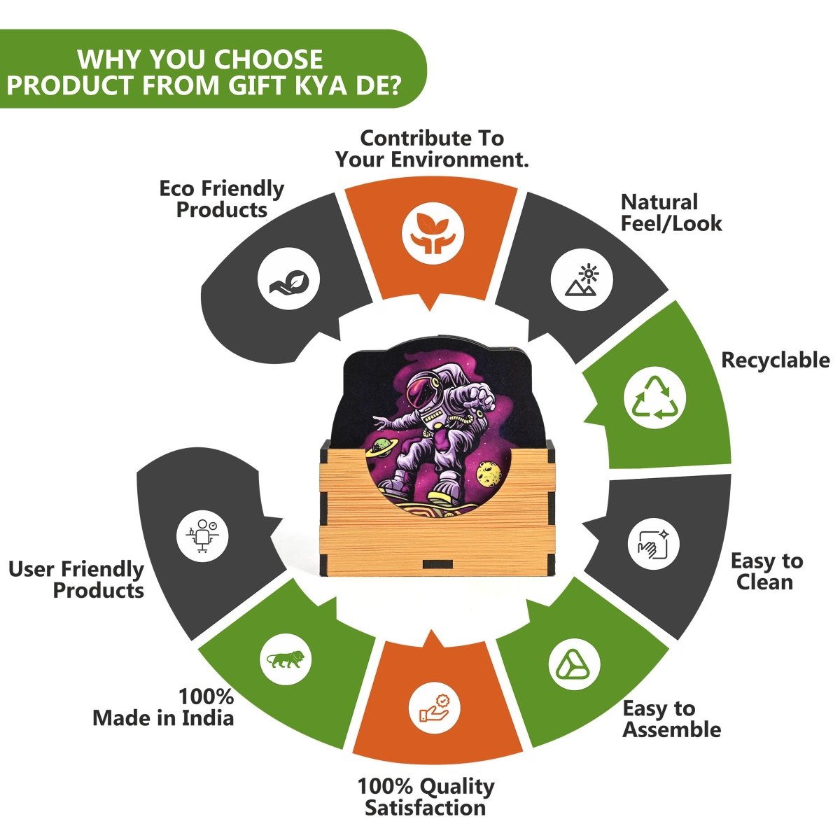 Build Quality: Coaster stand Is A Very Strong And Sturdy Build Quality Made Up Of 3.2 Mm Polished MDF Engineering Wood To Last Longer And Light In Weight, Made With A Quality Product, And Very Easy To Clean. Strong Quality, Not Easy To Break.