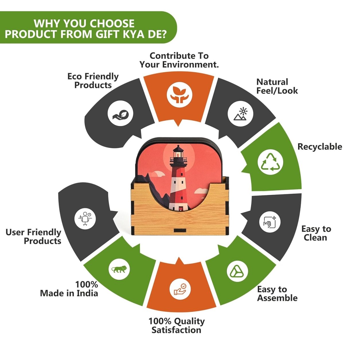 Build Quality: Coaster stand Is A Very Strong And Sturdy Build Quality Made Up Of 3.2 Mm Polished MDF Engineering Wood To Last Longer And Light In Weight, Made With A Quality Product, And Very Easy To Clean. Strong Quality, Not Easy To Break.