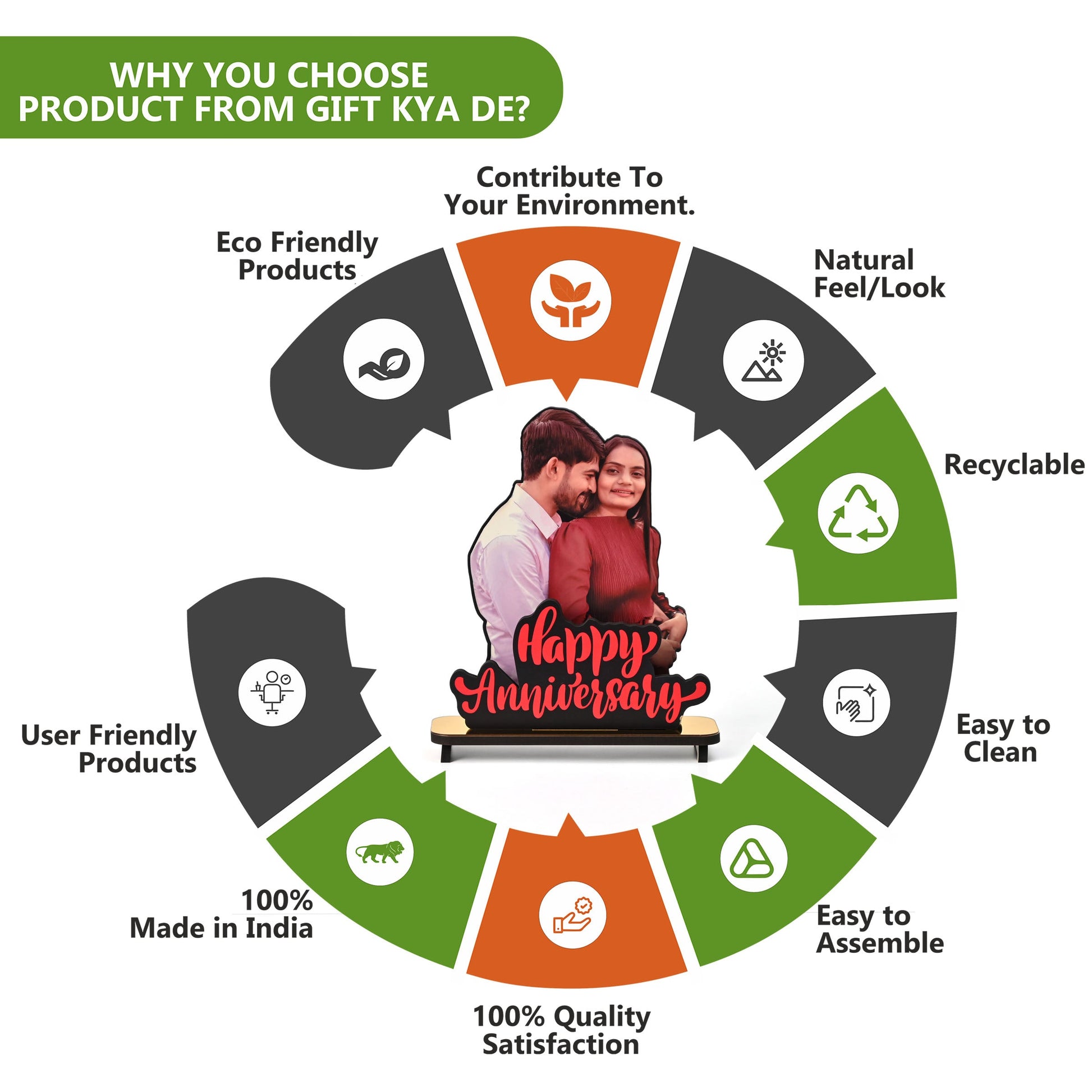 Happy Anniversary Customized Wooden Photo Frame Stand - Personalized Couple Gift