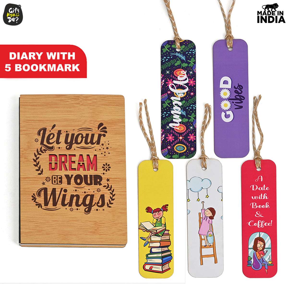 Diary Notebook with 5 Colorful Bookmarks | Motivational Quotes (190 quality pages)