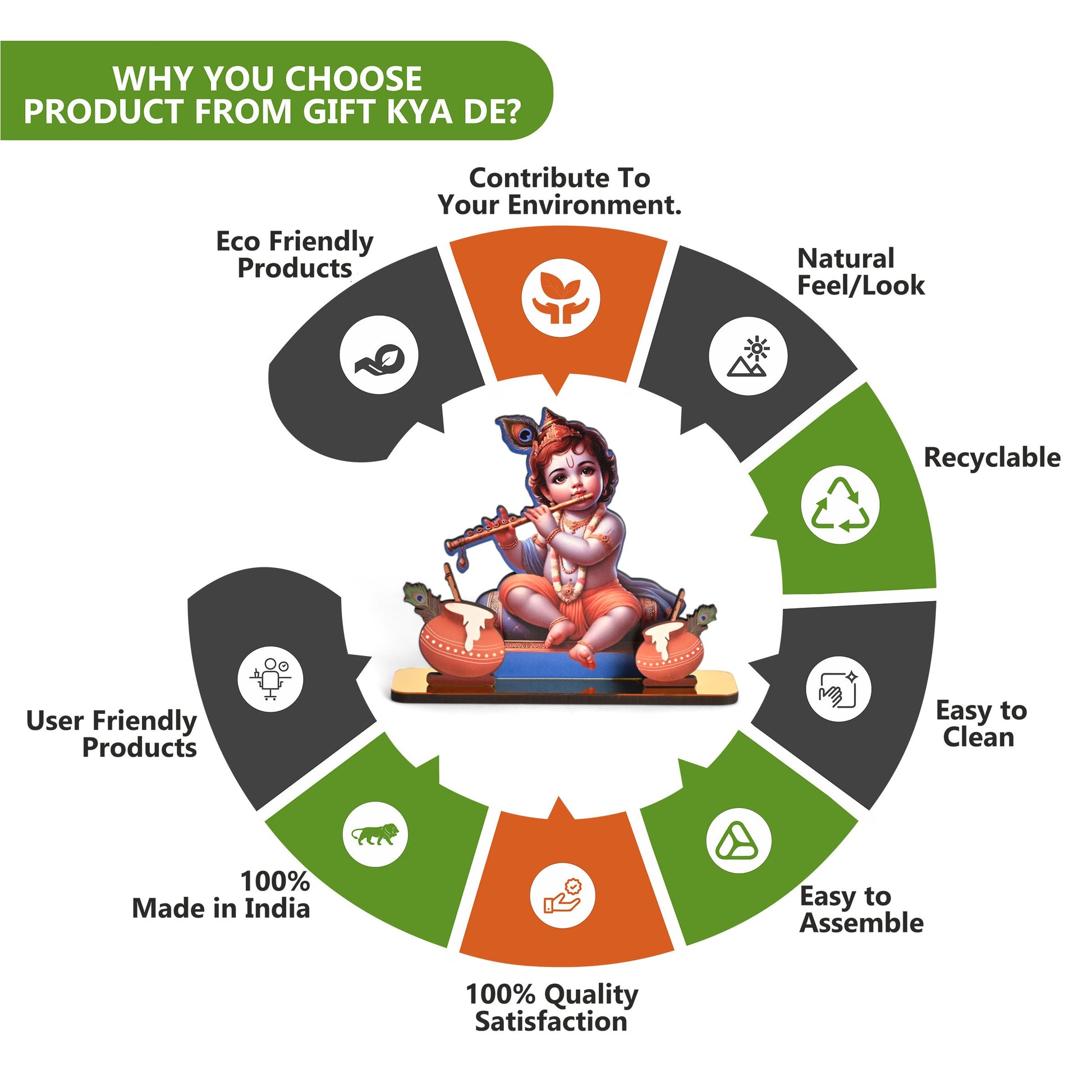 - Divine Depiction: Features an adorable Baby Krishna playing the flute, with butter pots, adding a spiritual touch to your home or office.
