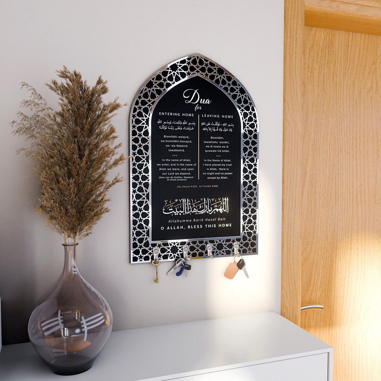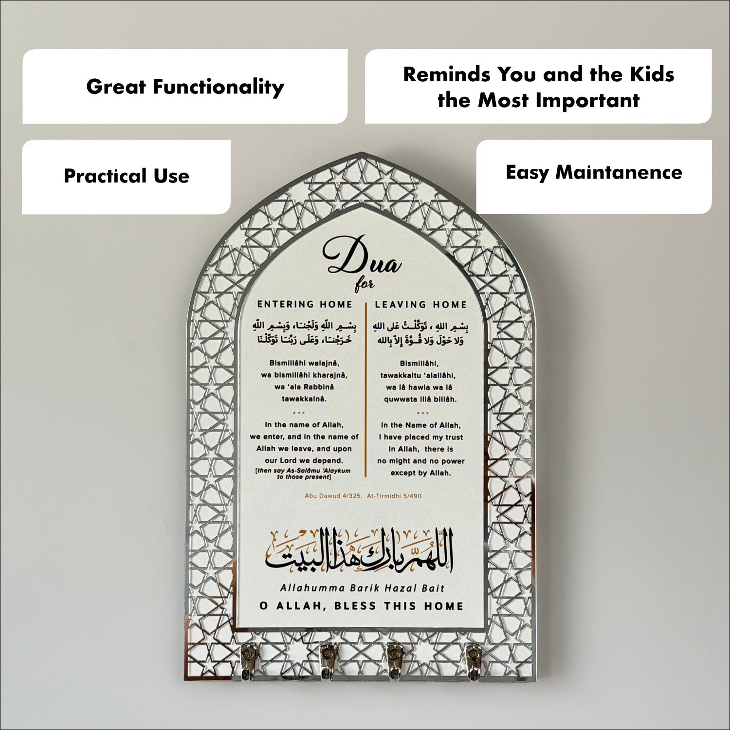 Dua for Entering Home and Leaving Home Wood Key Holder