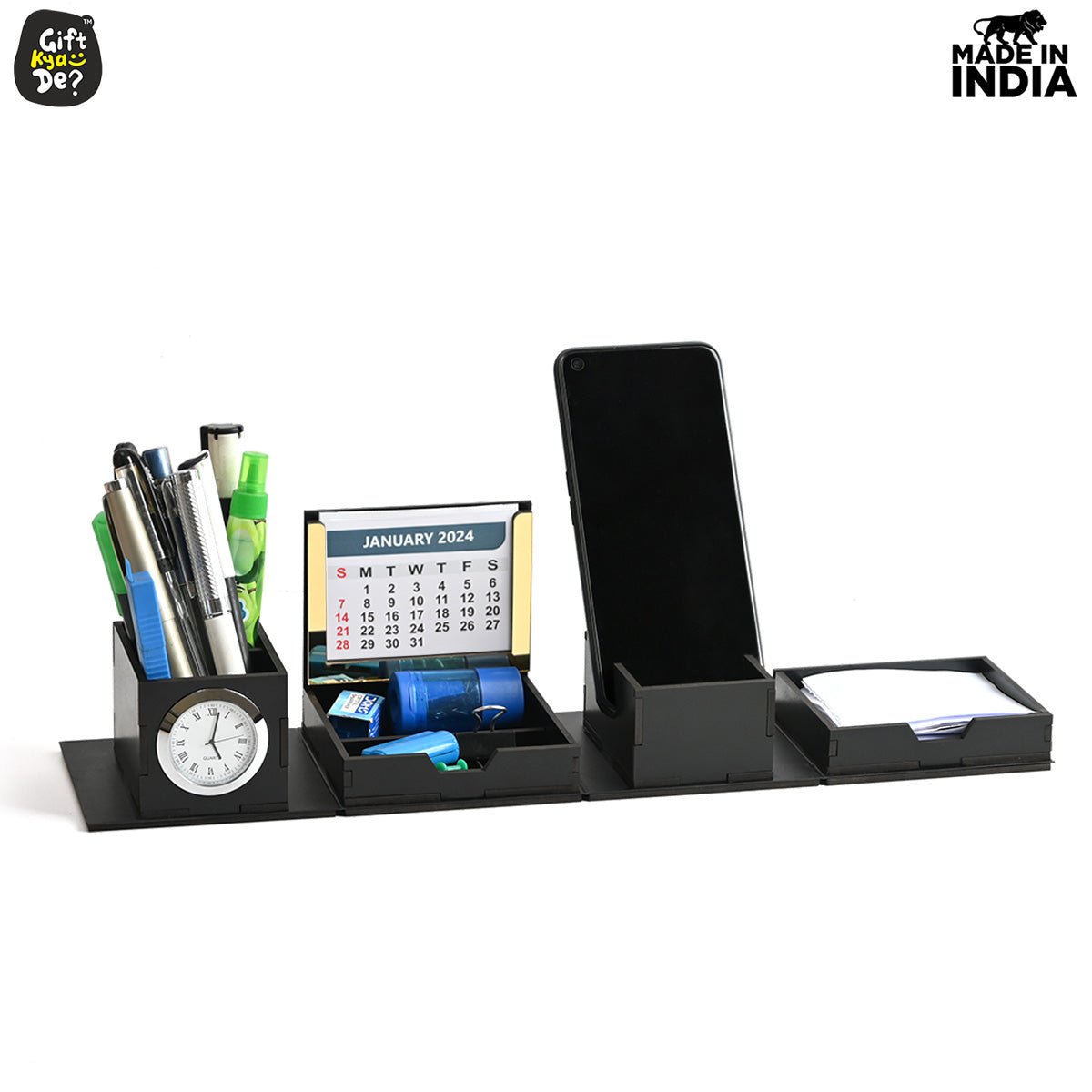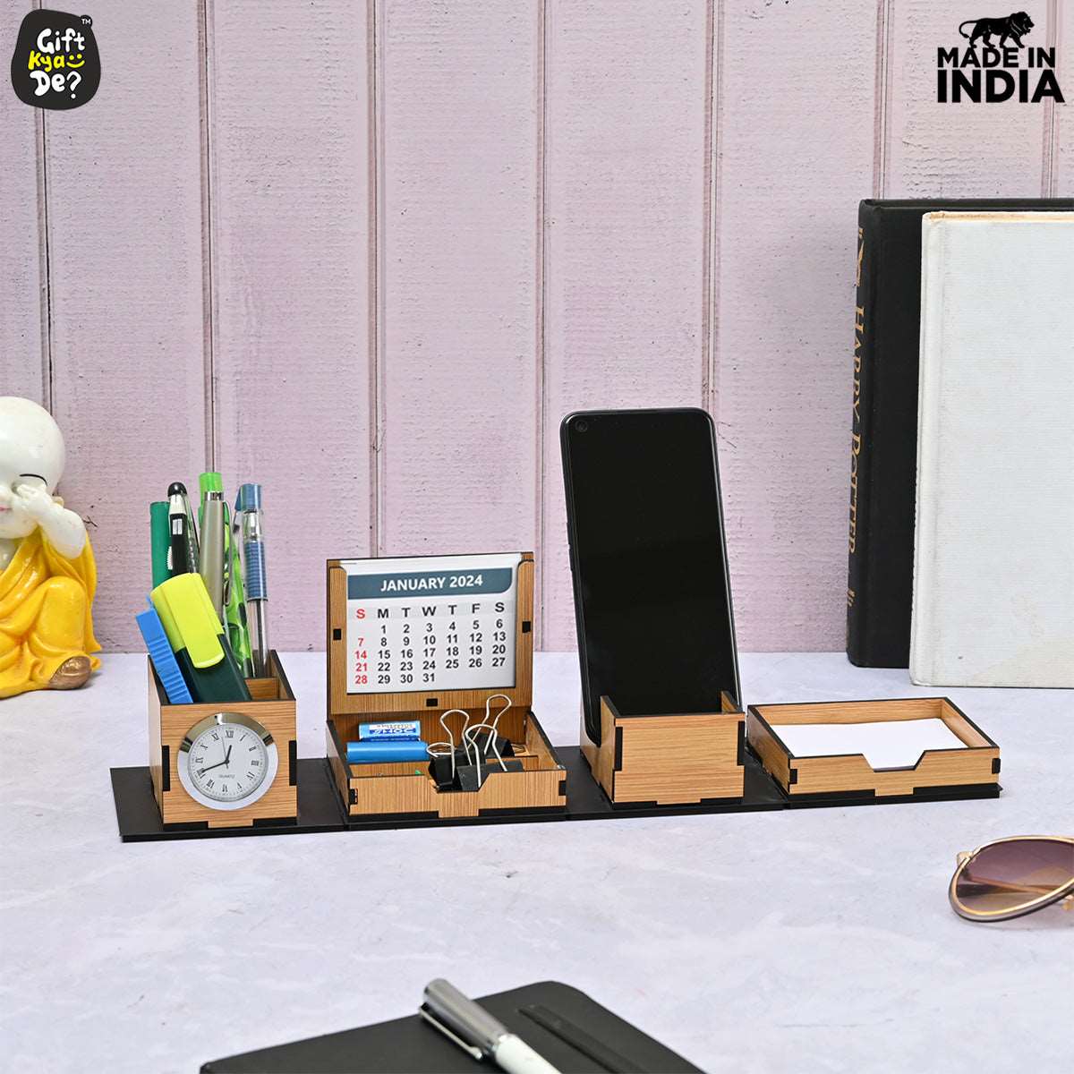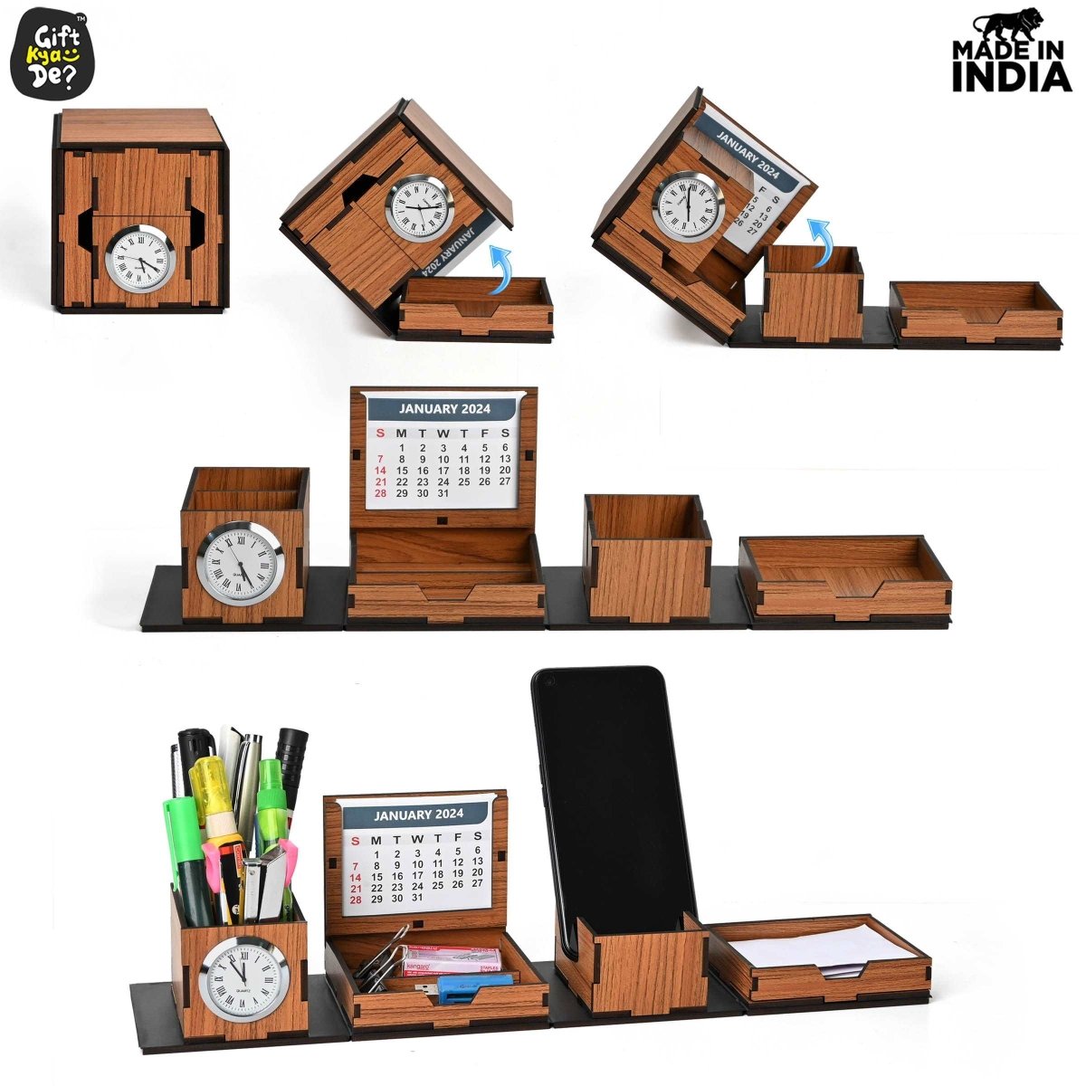 Foldable All in One Office Desk Organizer With Clock, Calendar 2025 & Mobile Stand | Desk Accessories