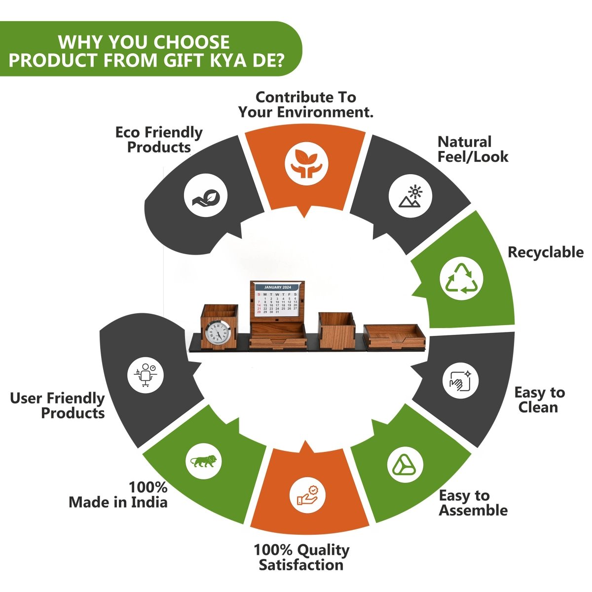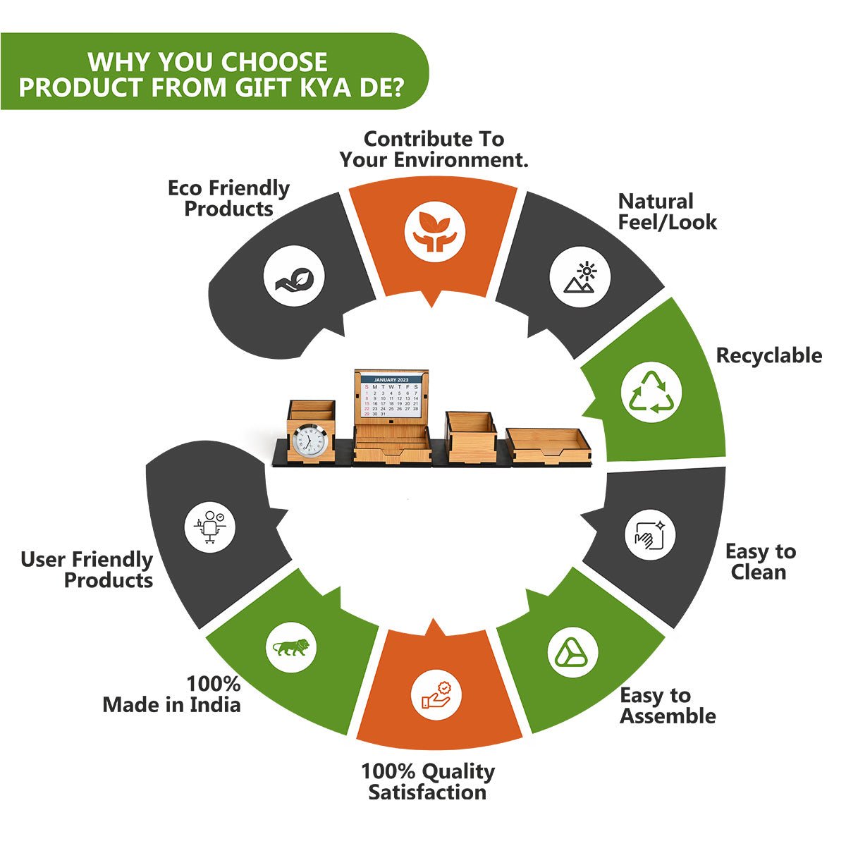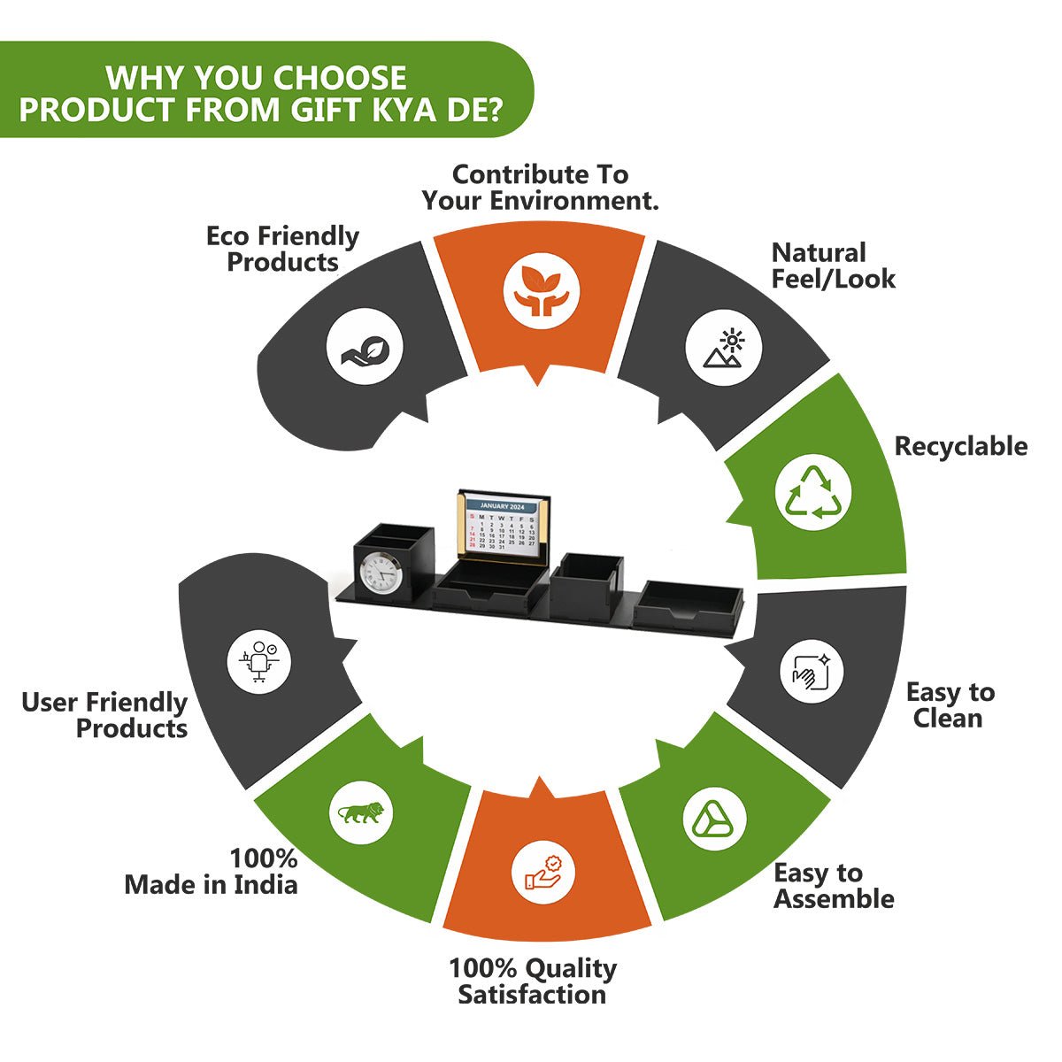 Foldable All in One Office Desk Organizer With Clock, Calendar 2025 & Mobile Stand | Desk Accessories
