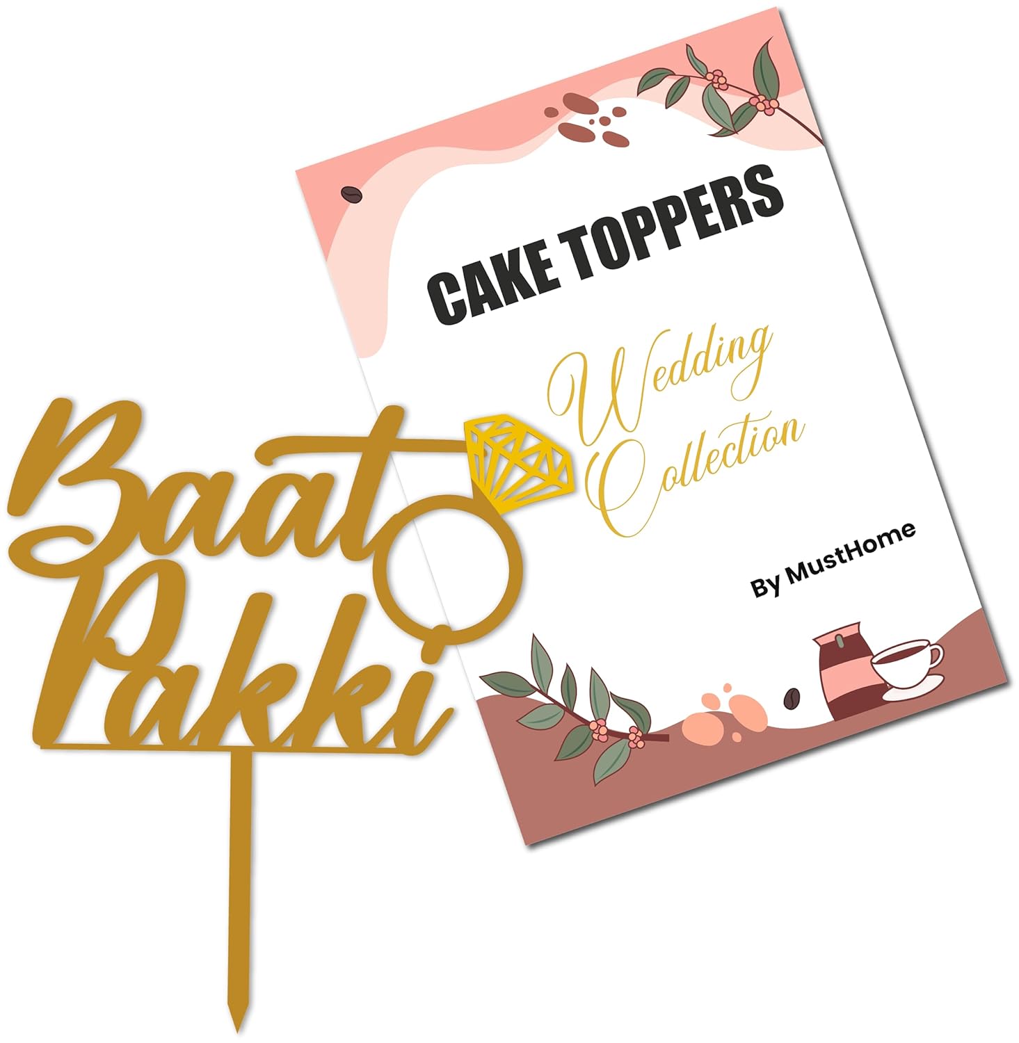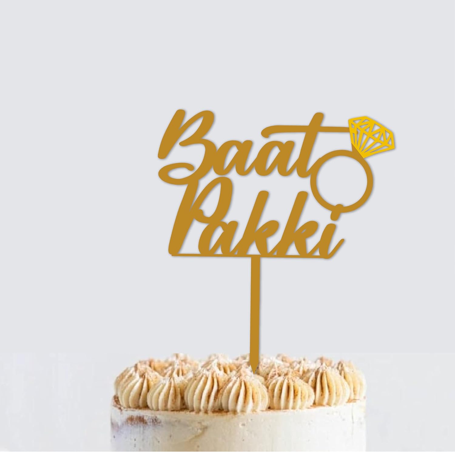 - Wedding Engagement Cake Topper in Shiny Golden Acrylic