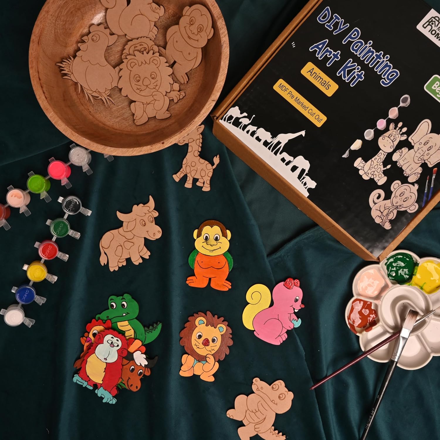 FusionEdge Home | DIY Wood Paint Kit for Kids | Animals Wooden Cutouts