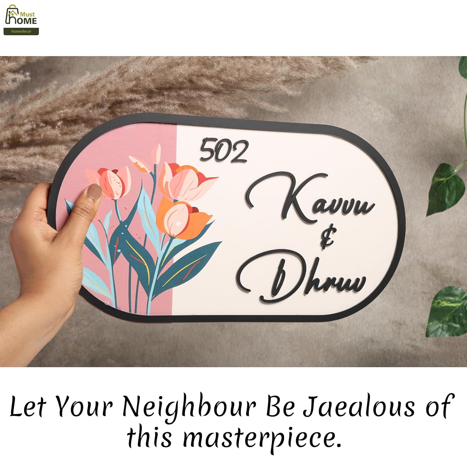- CUSTOMISATION: Elegant house nameplate featuring personalised text and floral design, perfect for creating a welcoming entrance to your home