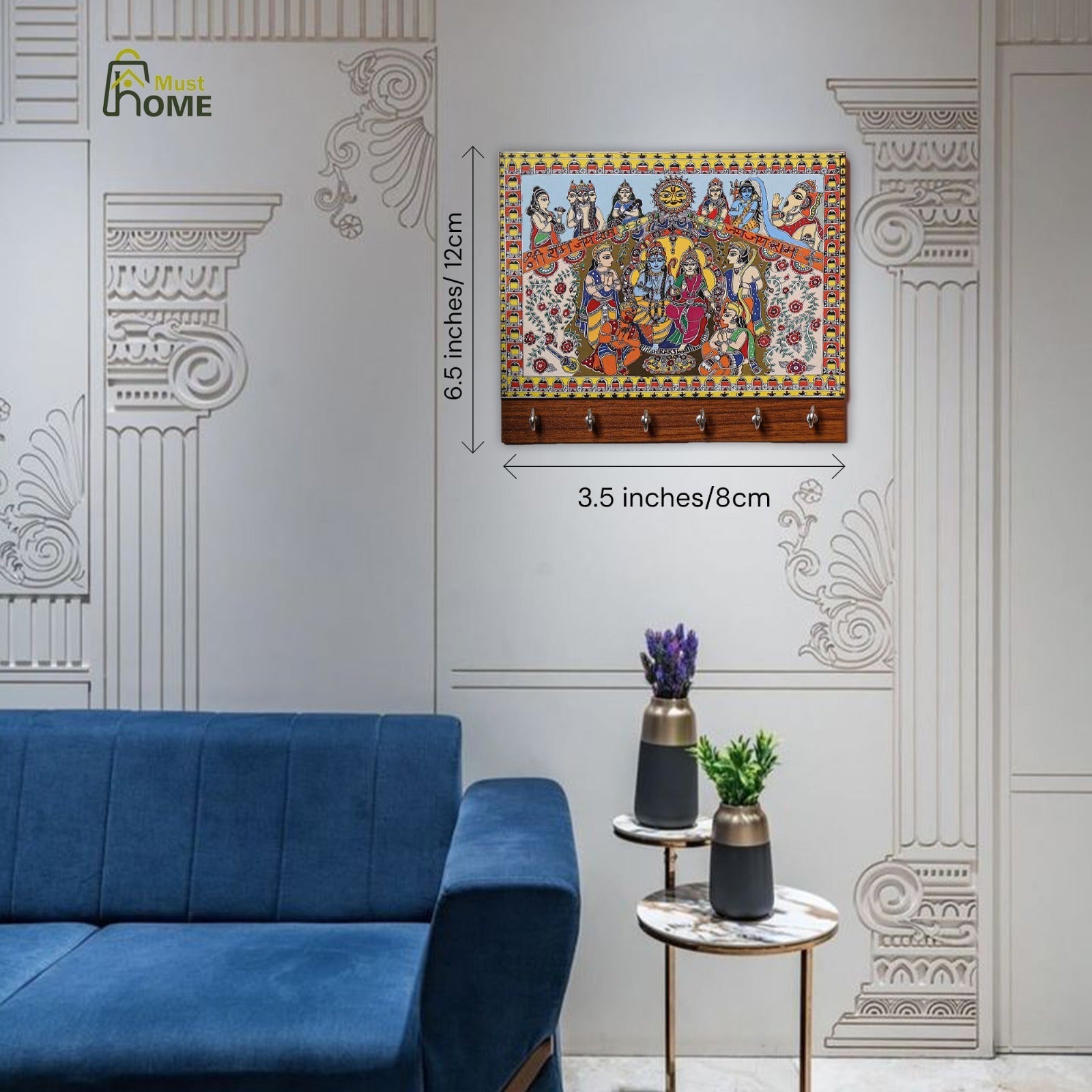 FusionEdge Home Premium Madhubani Lord Ram Family Home Keys Wooden Key Holder