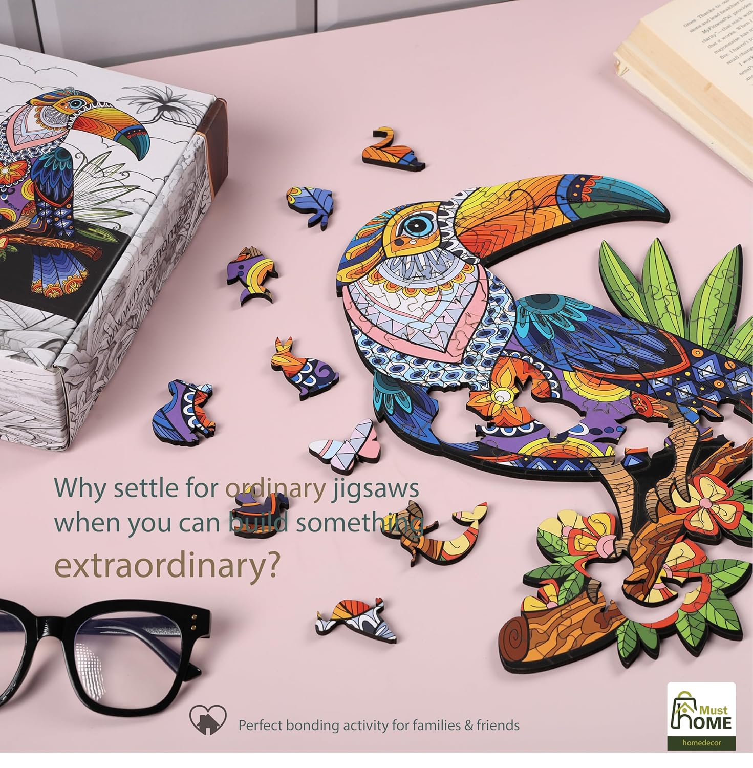 - UNIQUE DESIGN: Beautiful animal-shaped toucan puzzle featuring vibrant mandala art pattern, creating an engaging and visually appealing puzzle experience