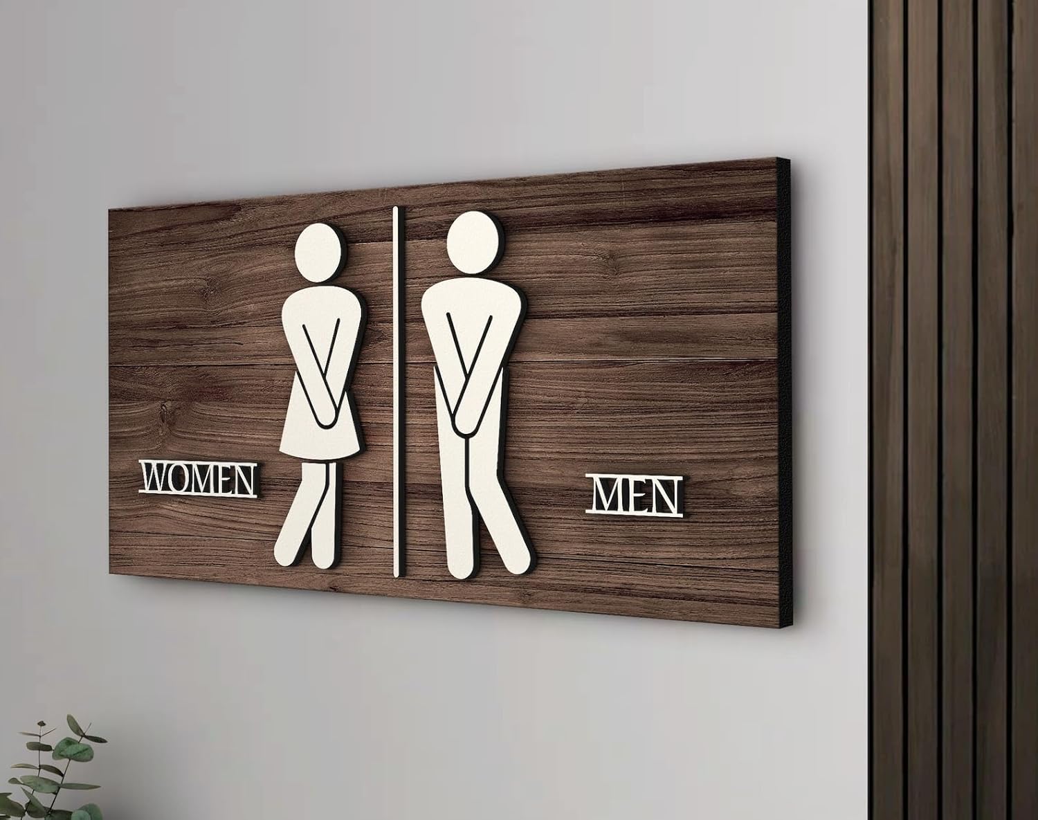 - HIGH CONTRAST COLORS, super bold fonts, and simple graphics to reach an eye catching and high impact communication, this highly visible signs make your Restroom Men & Women message is hard to miss.