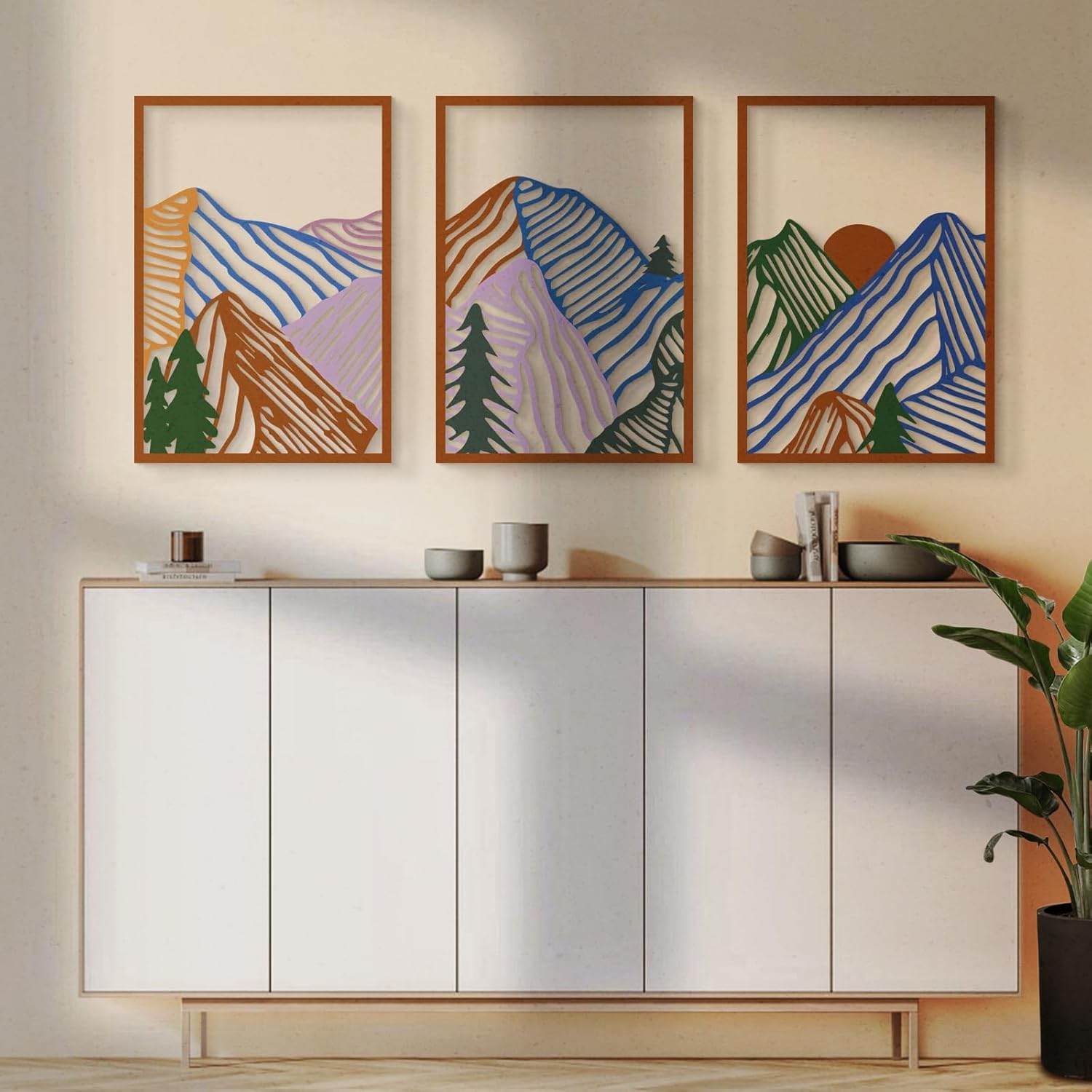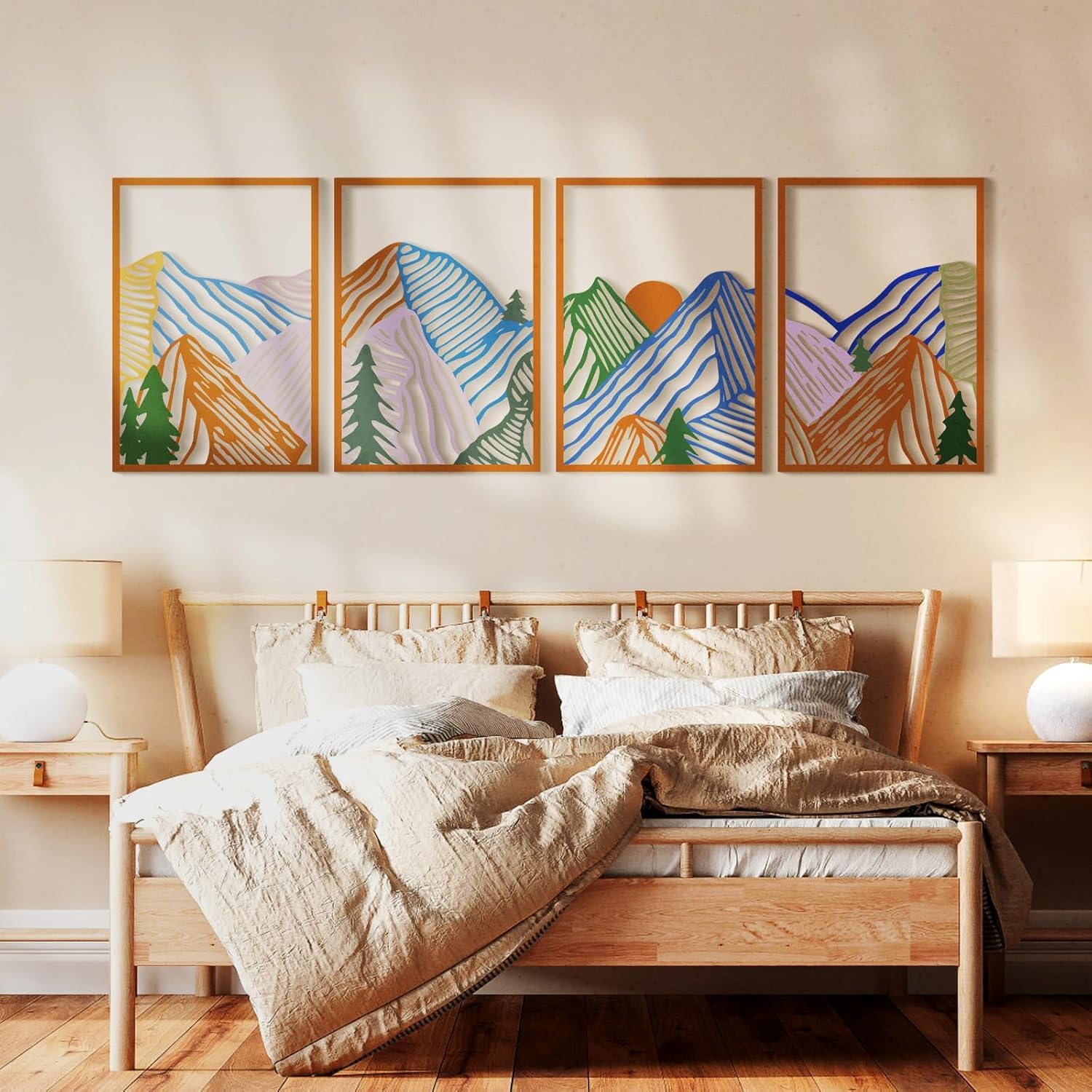 FusionEdge Home , 4 Pcs Colorful Abstract Mountain Wall Art, Nature wall decor items