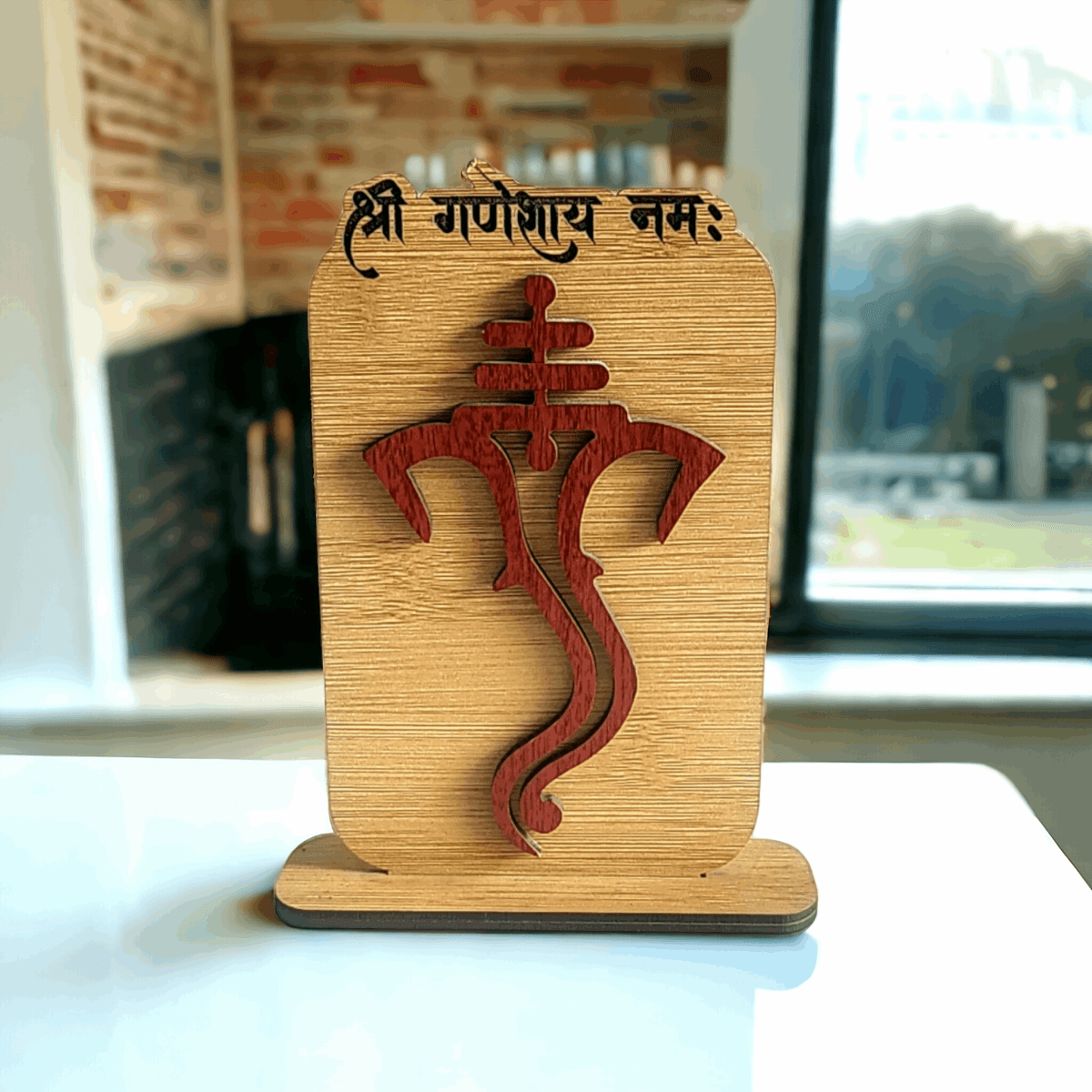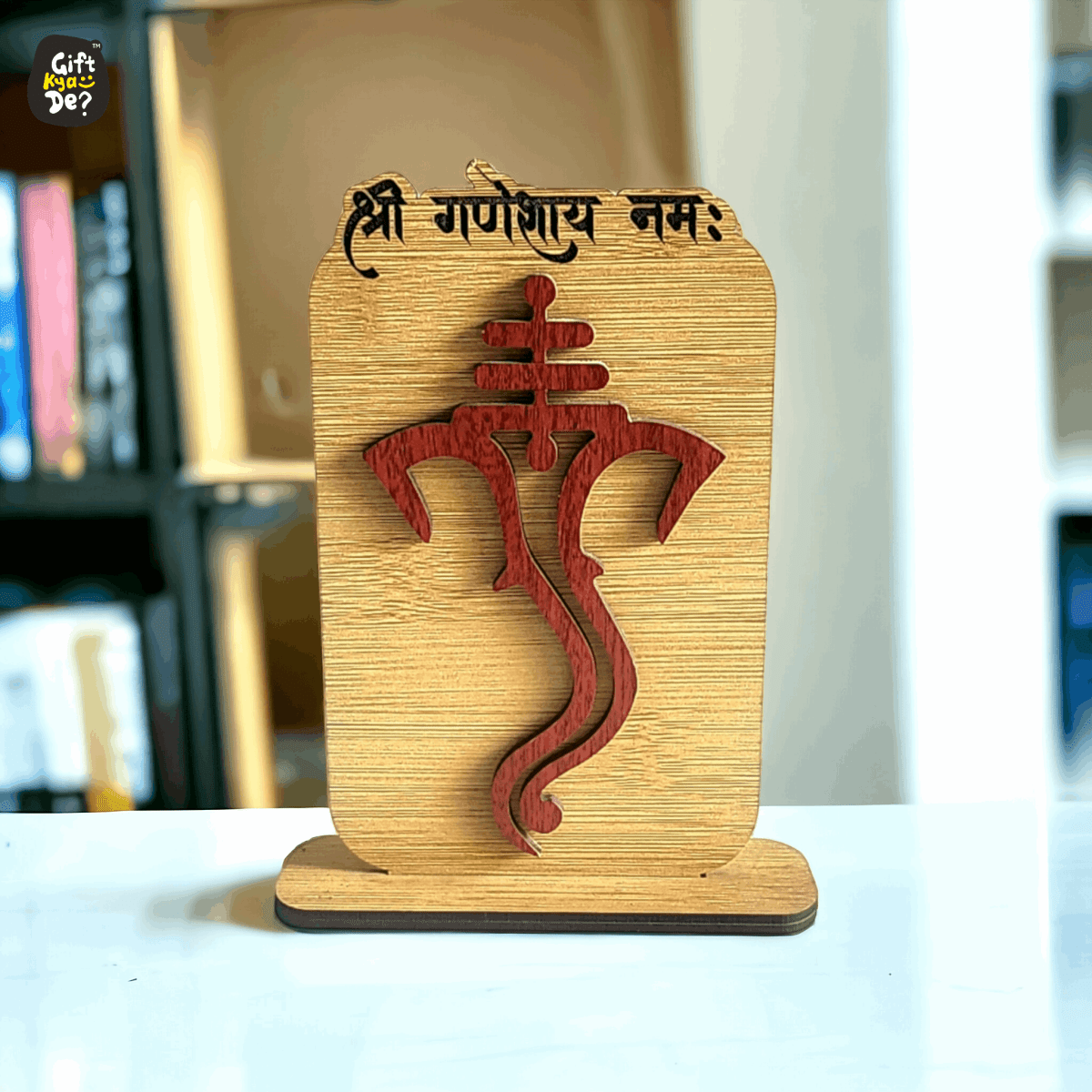 Customize Ganesh Wooden Idol Table Top | Shri Ganeshay Namh For Pooja Room | House Warming / Return Gift