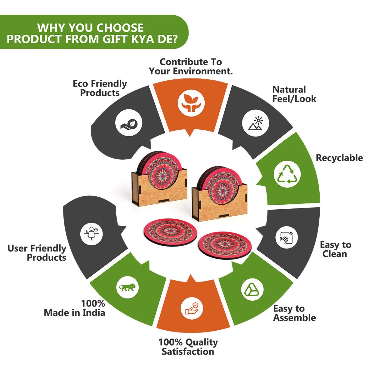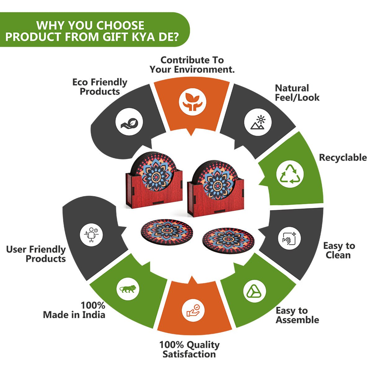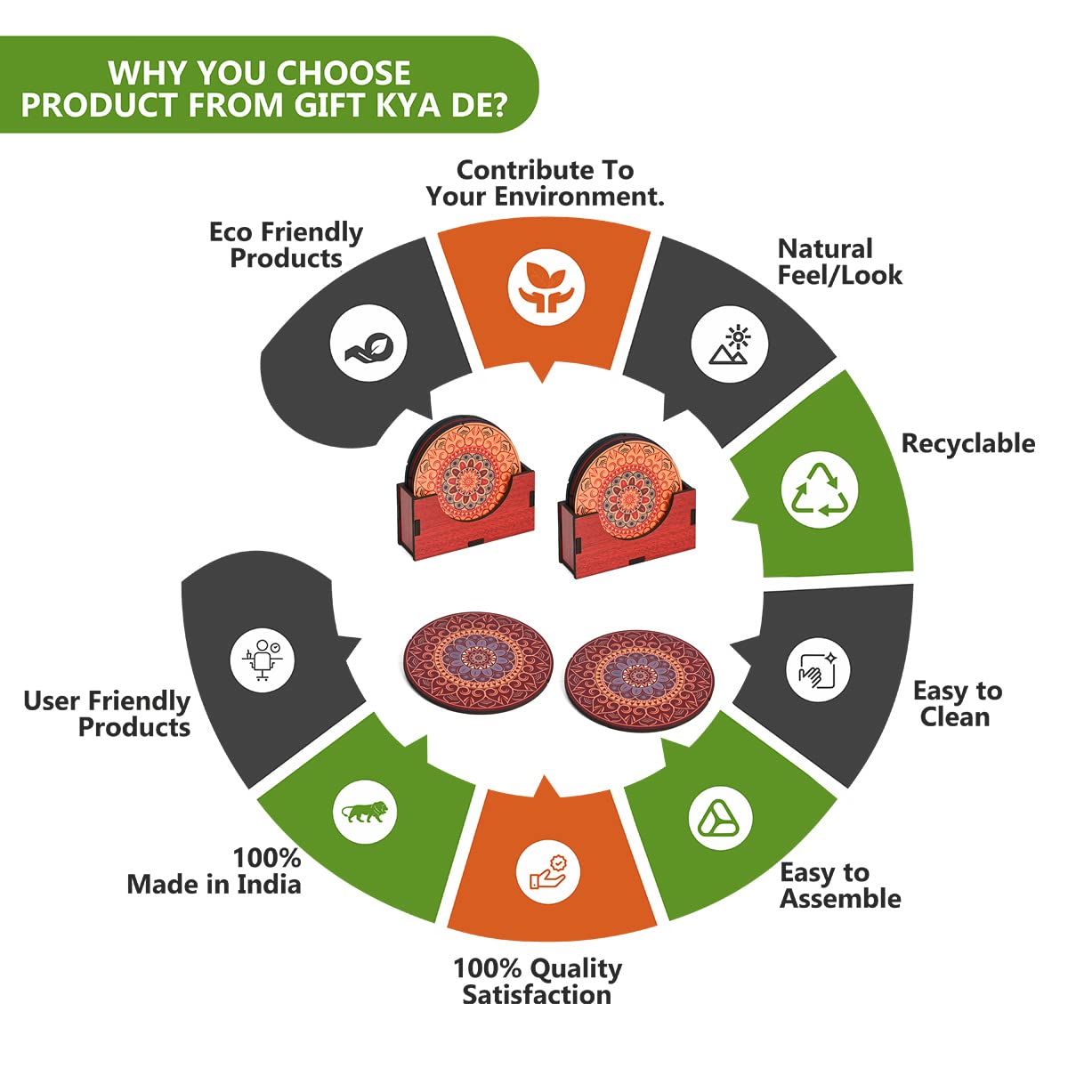 Kitchen Decor Element: Decorate Your Kitchen With A Set Of 6 Beautiful Wooden Coasters. Add To Your Kitchen Decor With This Handcrafted Piece. Comes In An Attractive Printed Color That Elevates The Look Of Your Kitchen And Dining Space.