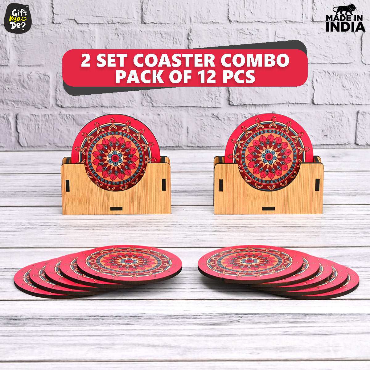 Coaster Set of 12 Beautiful Wooden Coasters with Proper Coaster Stand (Combo Pack) (12 pc 3.5 x 3.5 inch)