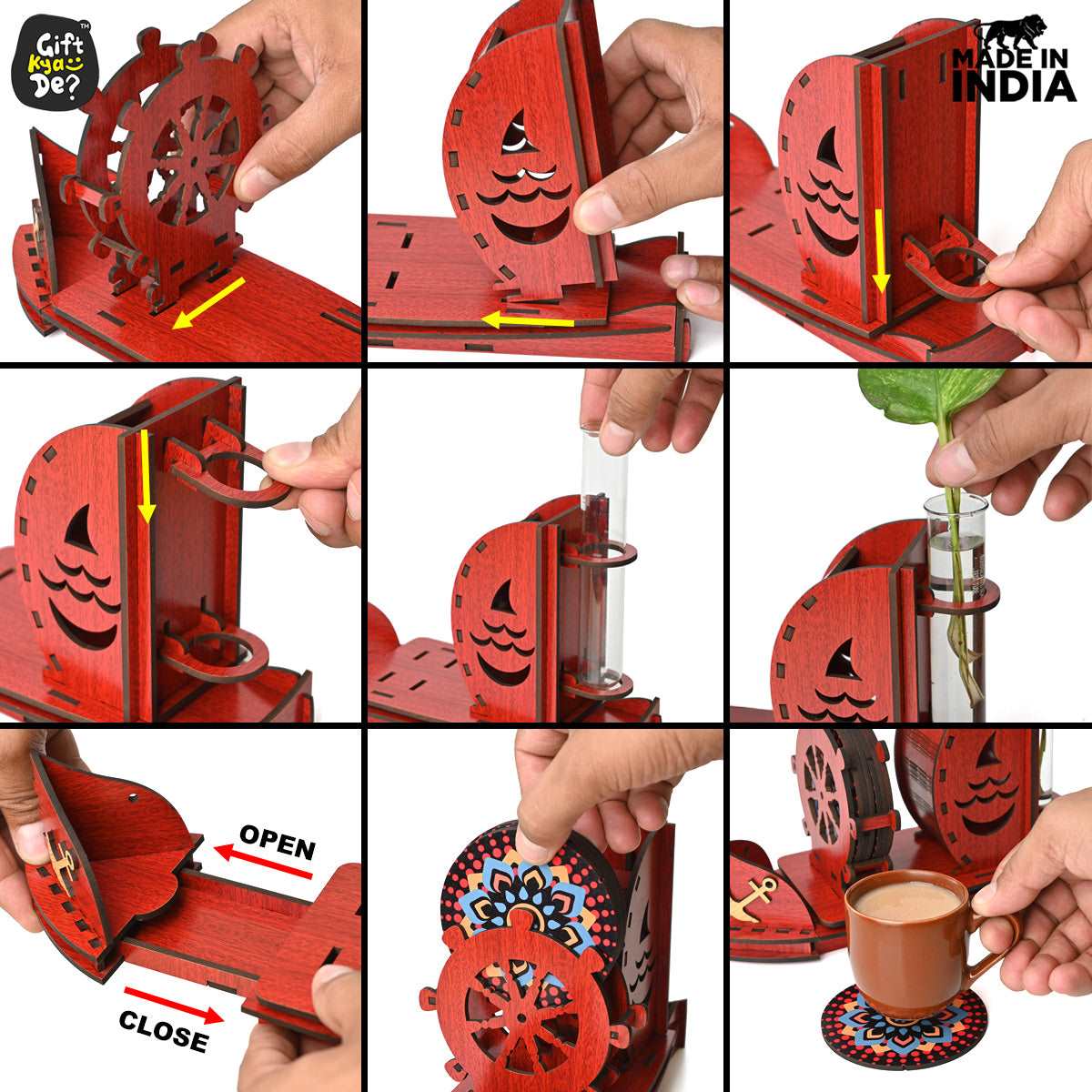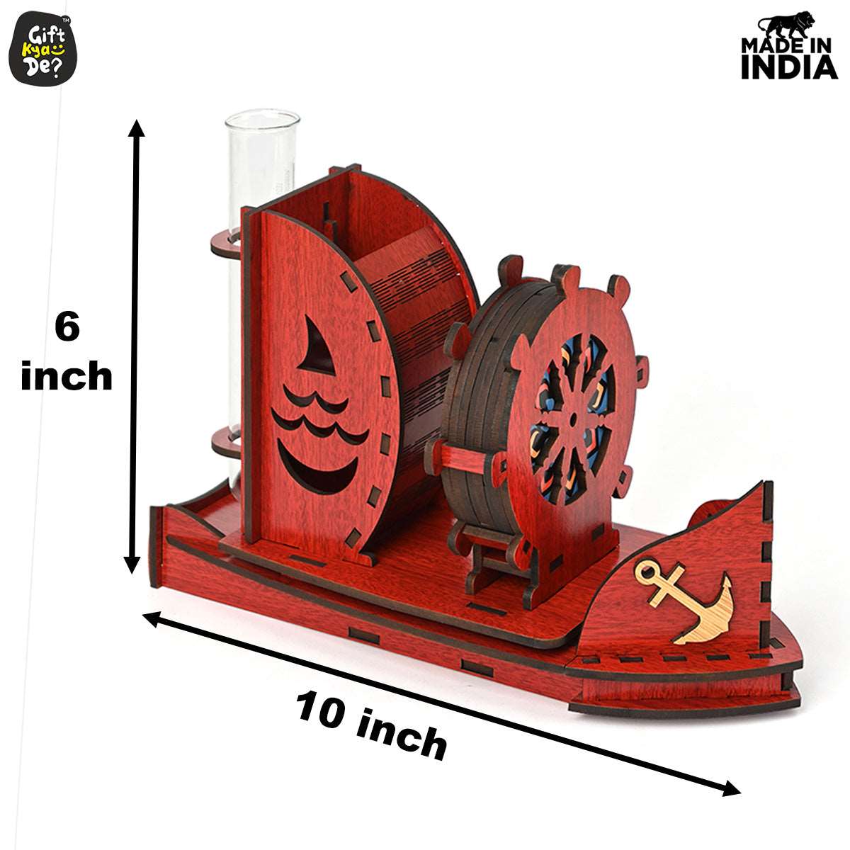 Boat Shape Coaster Stand With Set of 6 Coaster & Cute Test Tube Planter