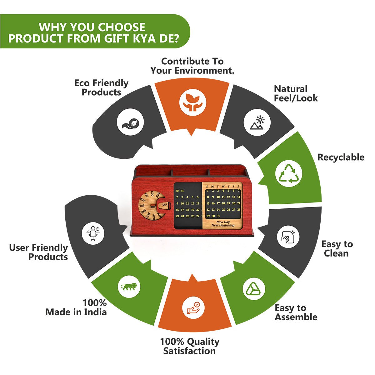 - It provides enough space for storing a range of different size items. Sorting pens, staples, sticky notes, and other daily supplies. keep all your work supplies neat and available. A professional-looking wooden calendar is lightweight and portable.