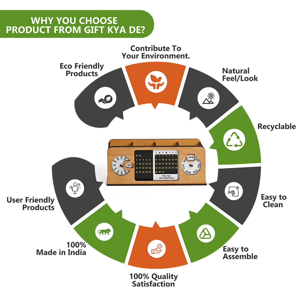 Unique Design: A lifetime desk calendar 2023 which never expires, just you have to set 1st date and day, and then it is good to go.