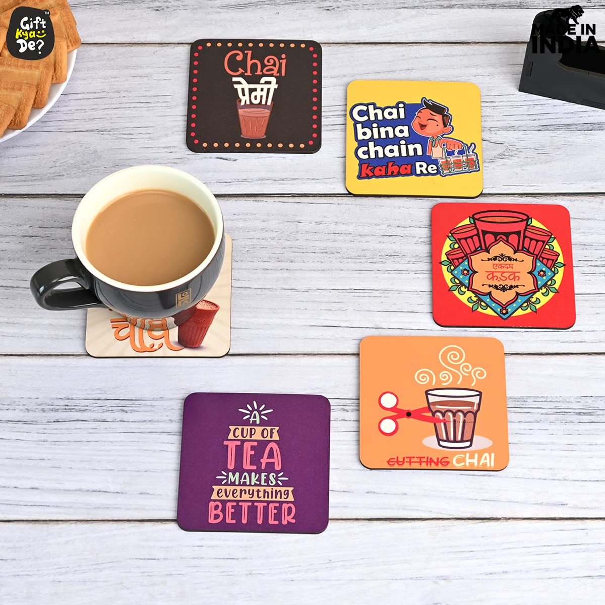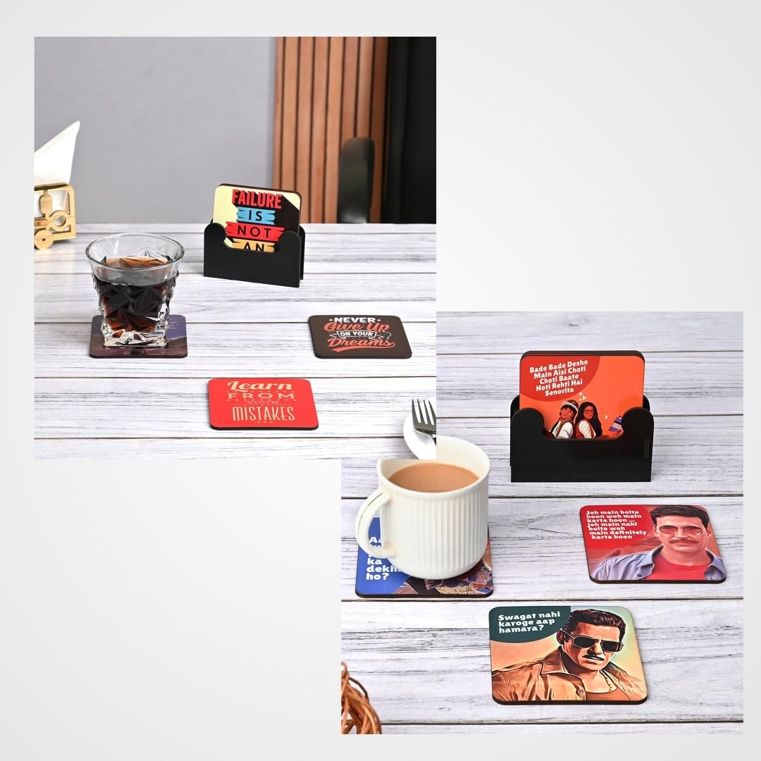 Build Quality: The coasters stand is a very strong and sturdy build quality made up of 3.5 mm polished MDF engineering wood to last longer and is light in weight, made with a quality product, and very easy to clean. Strong quality, not easy to break.